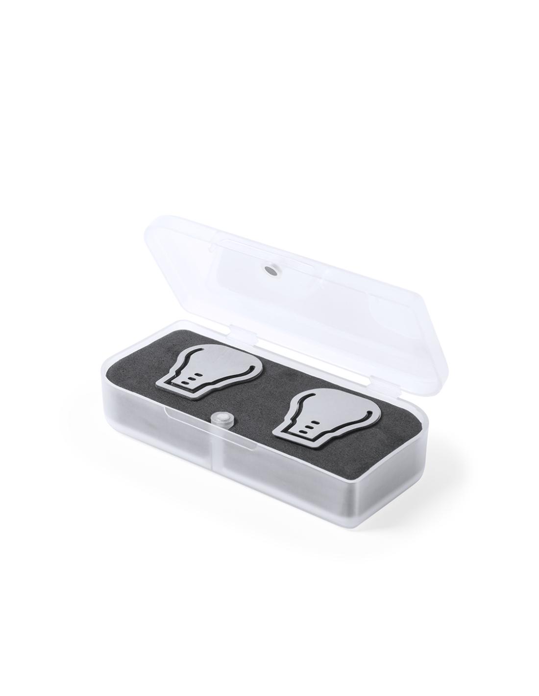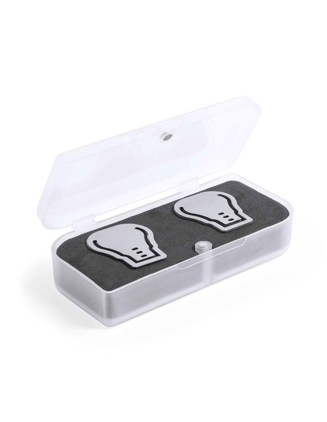 Set de 20 clips en diseño de bombilla. Presentados en estuche individual de PVC translúcido con cierre magnético e interior troquelado en suave espuma.