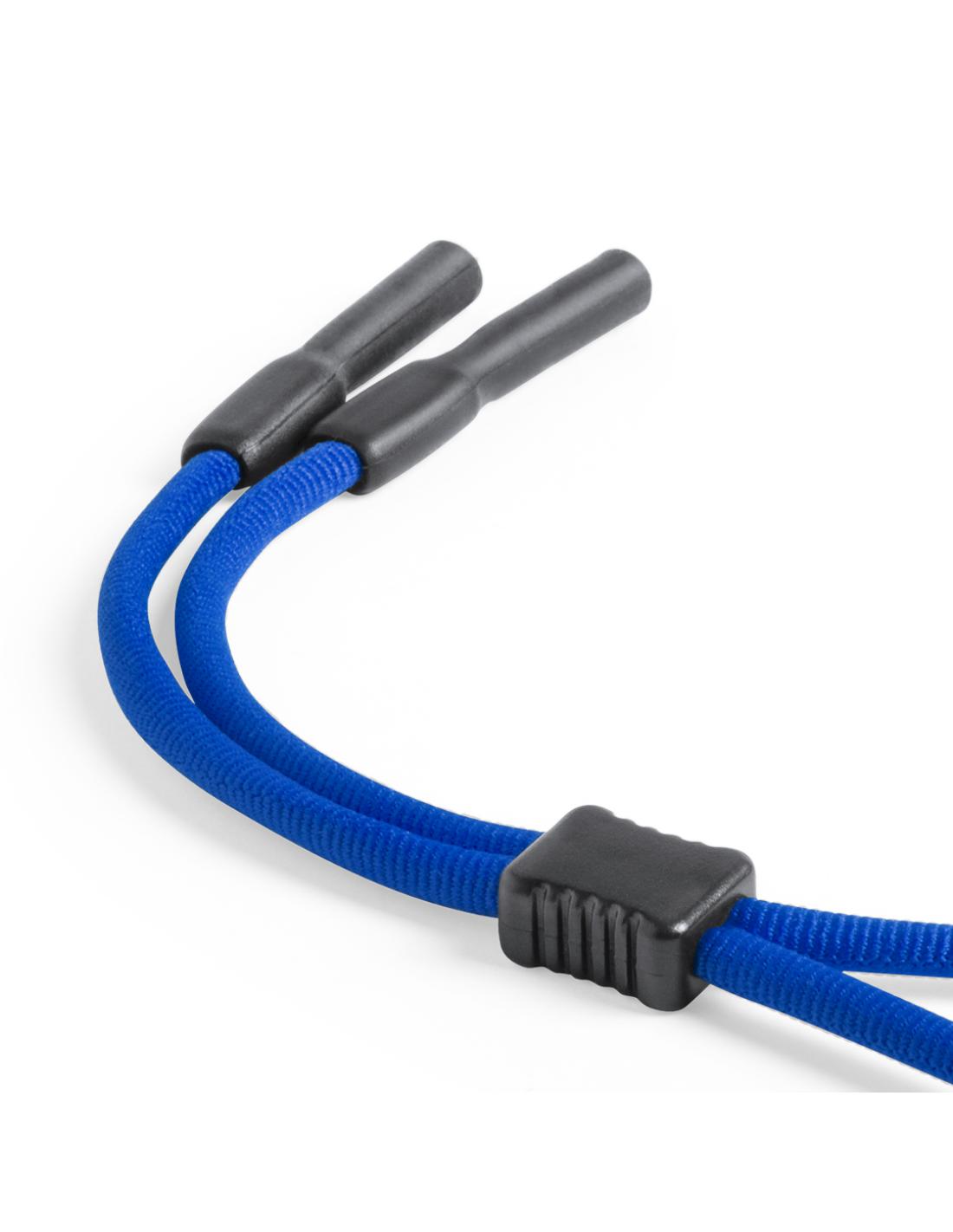 Original cinta para gafas con enganches de seguridad para todo tipo de patillas. En resistente poliéster de vivos colores. Accesorio de ajuste de seguridad con superficie lisa para marcaje.