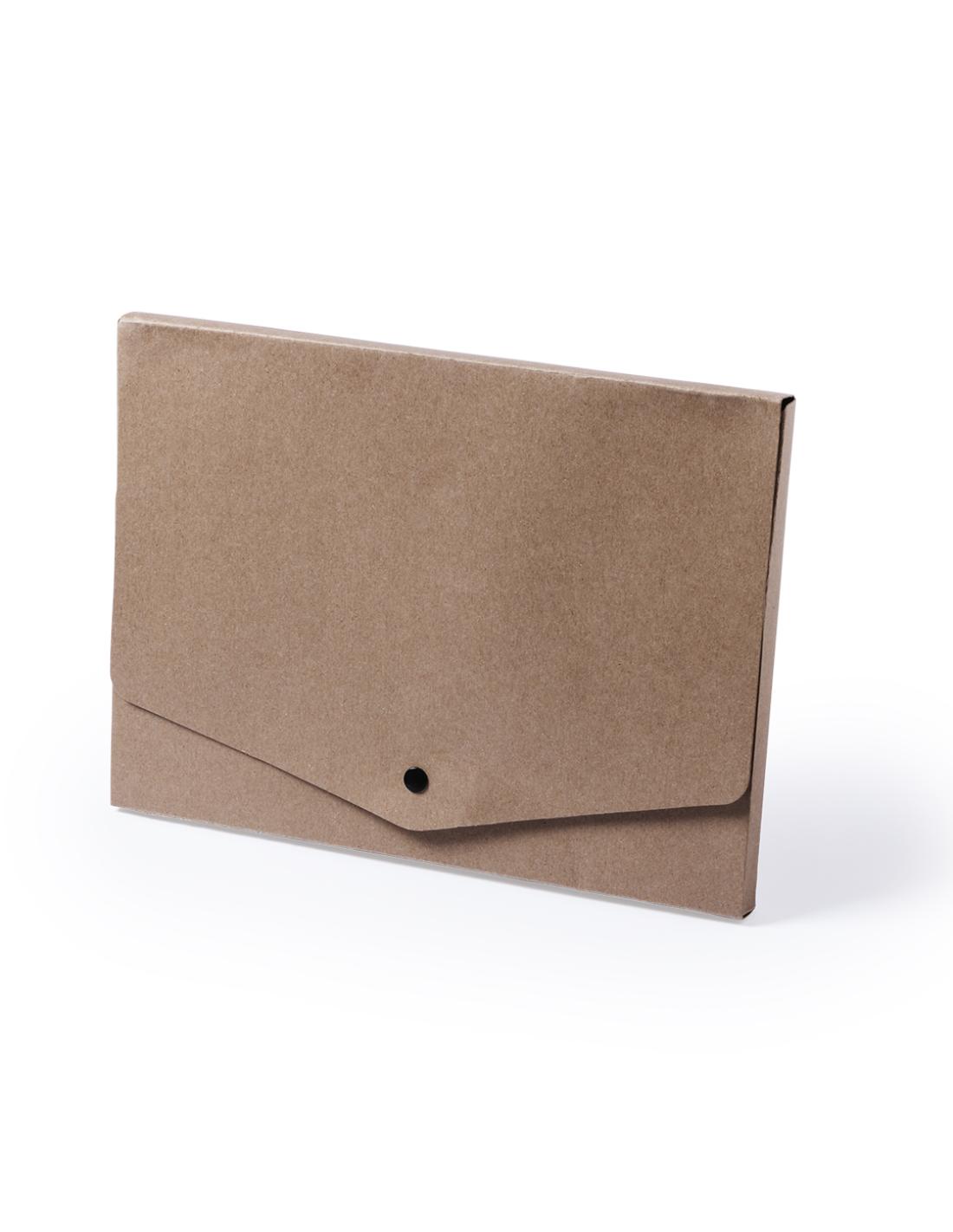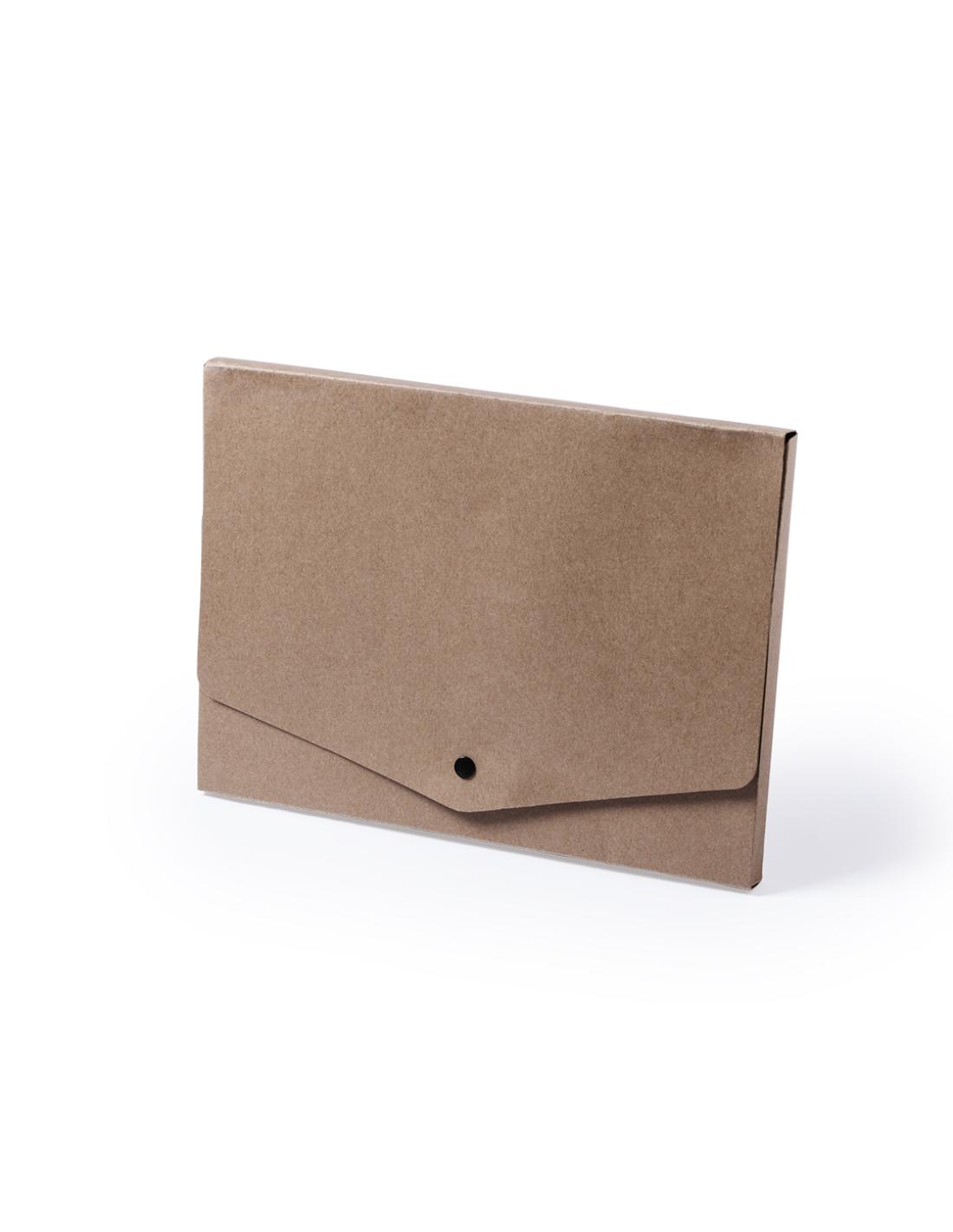 Portadocumentos en resistente cartón reciclado de acabado rígido con cierre de corchete en solapa.