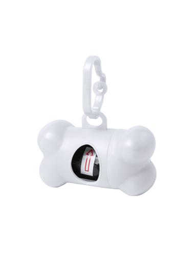 Dispensador de bolsas para mascotas con resistente cuerpo en vivos colores y diseño de hueso. Con mosquetón de transporte a juego y 15 bolsas incluidas.