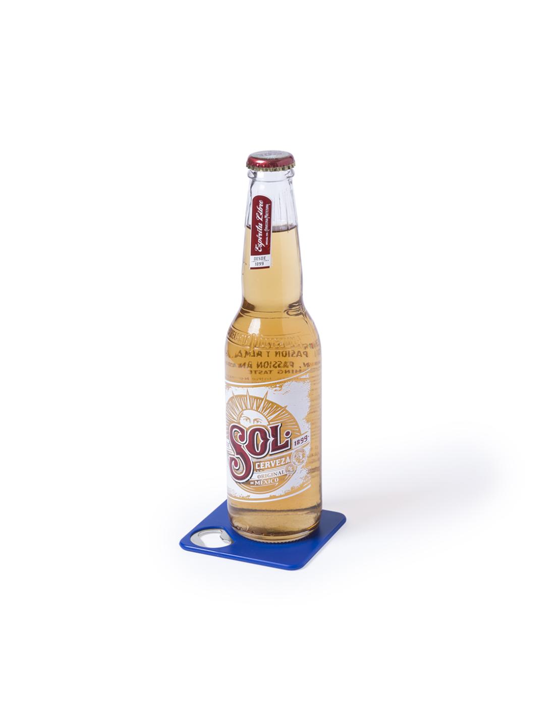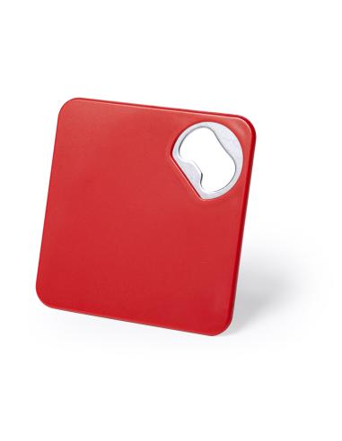 Original posavasos con abridor metálico integrado en variada gama de vivos colores. Con superficie anti deslizante en la base.