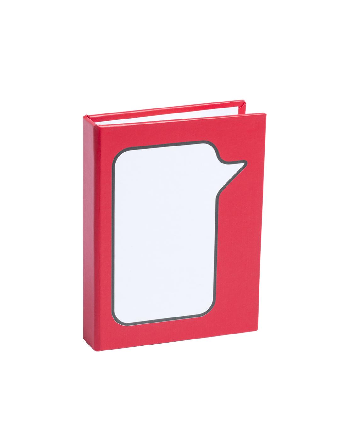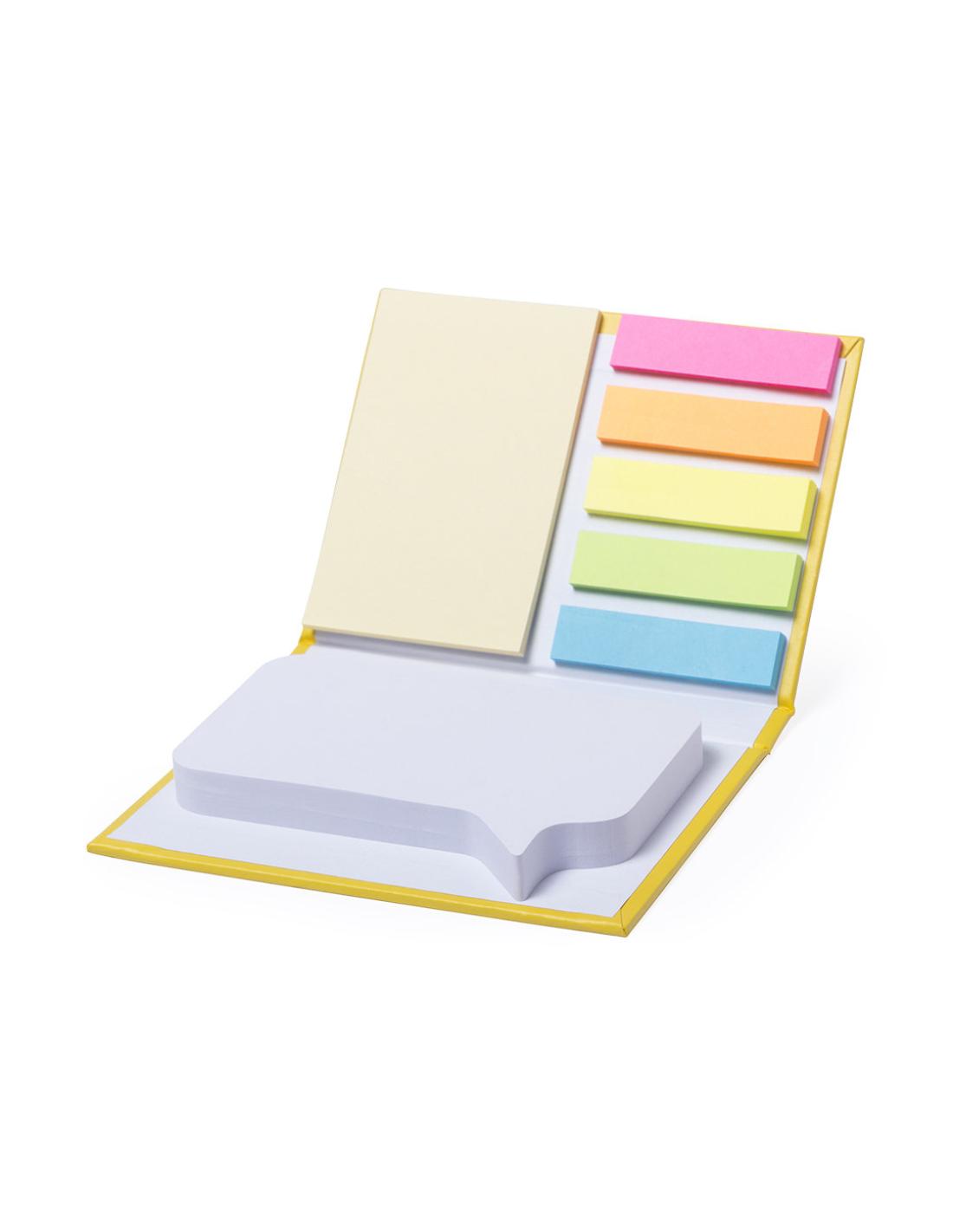 Original bloc de notas adhesivas con diseño de bocadillo y tapas de suave tacto acabadas en resistente cartón reciclado rígido de variados colores. Con 100 notas adhesivas grandes troqueladas en forma de bocadillo, 25 medianas y 125 mini notas adhesivas.
