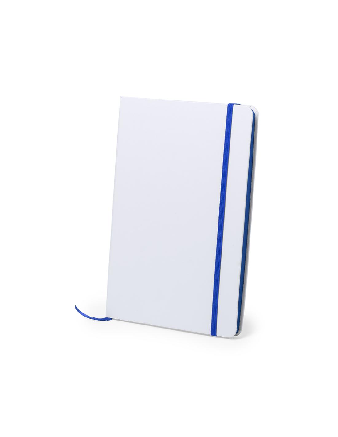 Bloc de notas con tapas rígidas de suave tacto acabadas en color blanco. De 100 hojas lisas con lomo en divertidos colores, elástico de sujeción y marcapáginas de tela a juego.