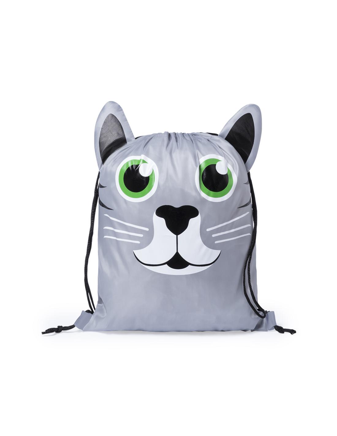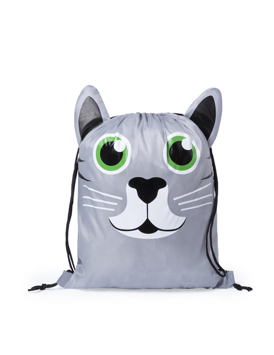 Mochila de cuerdas plegable para niño, en suave poliéster 210T de originales diseños con animalitos. Con cuerdas autocierre en color negro y esquinas reforzadas. Plegado de pequeño tamaño.