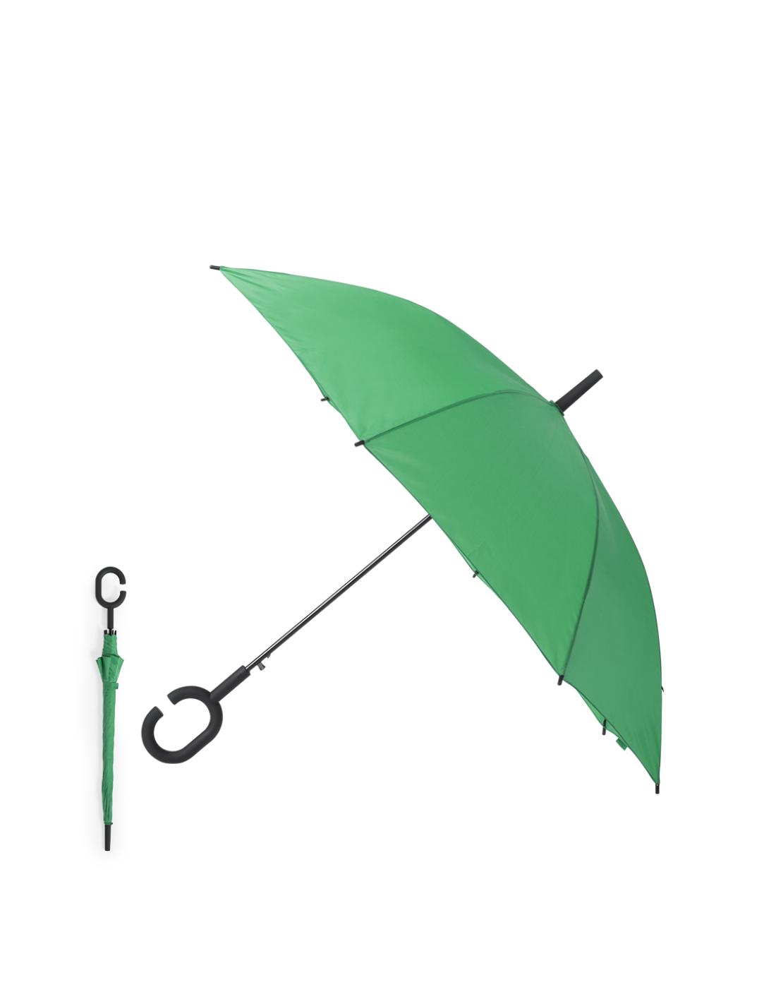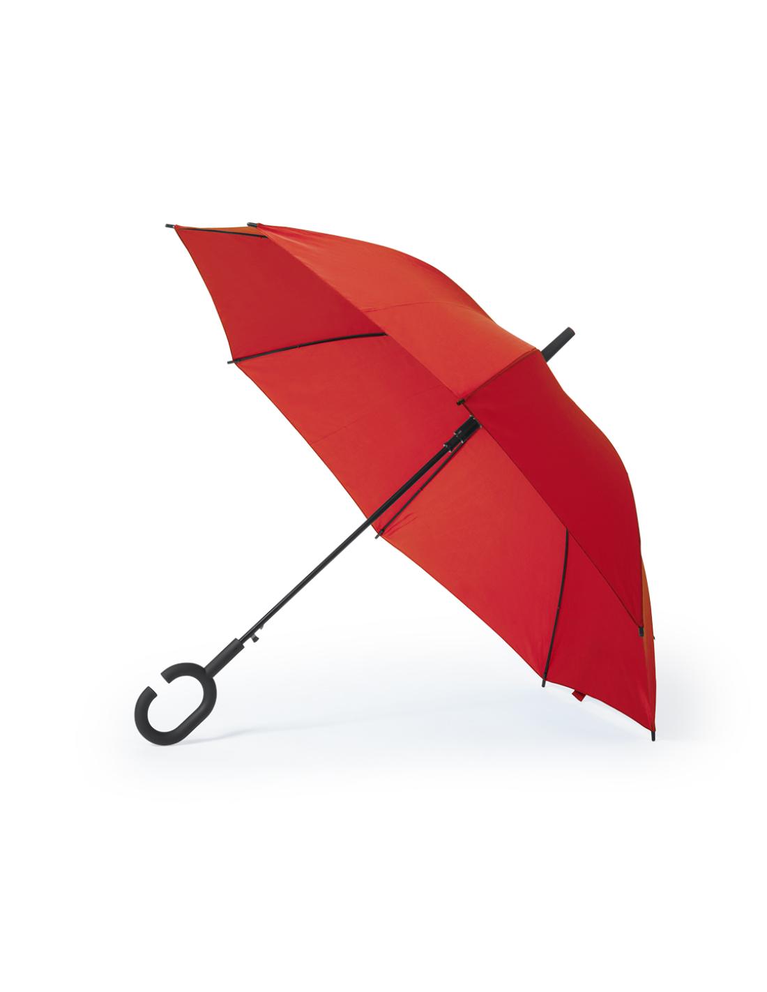 Paraguas de 8 paneles en extensa gama de vivos colores y 105cm de diámetro. De apertura automática, con sistema antiviento y en resistente material poliéster. Con varillas de fibra en color negro y original mango manos libres.