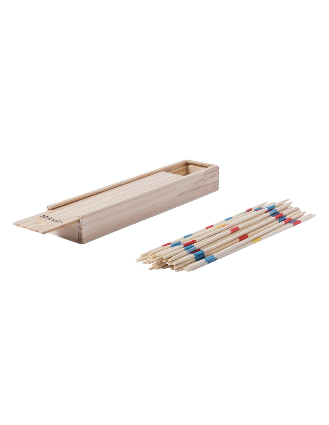 Clásico juego de habilidad mikado con 41 palitos de madera. Presentado en caja de madera con tapadera deslizante.