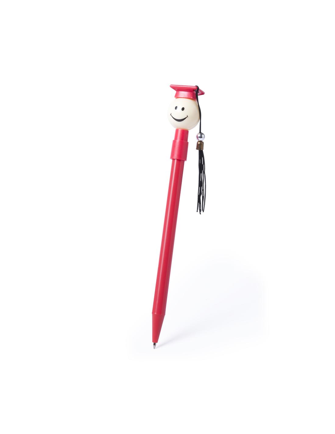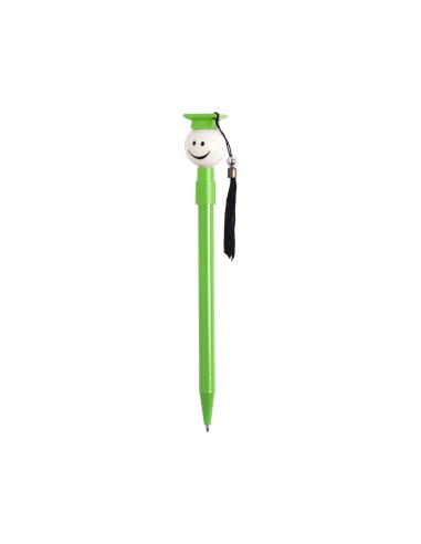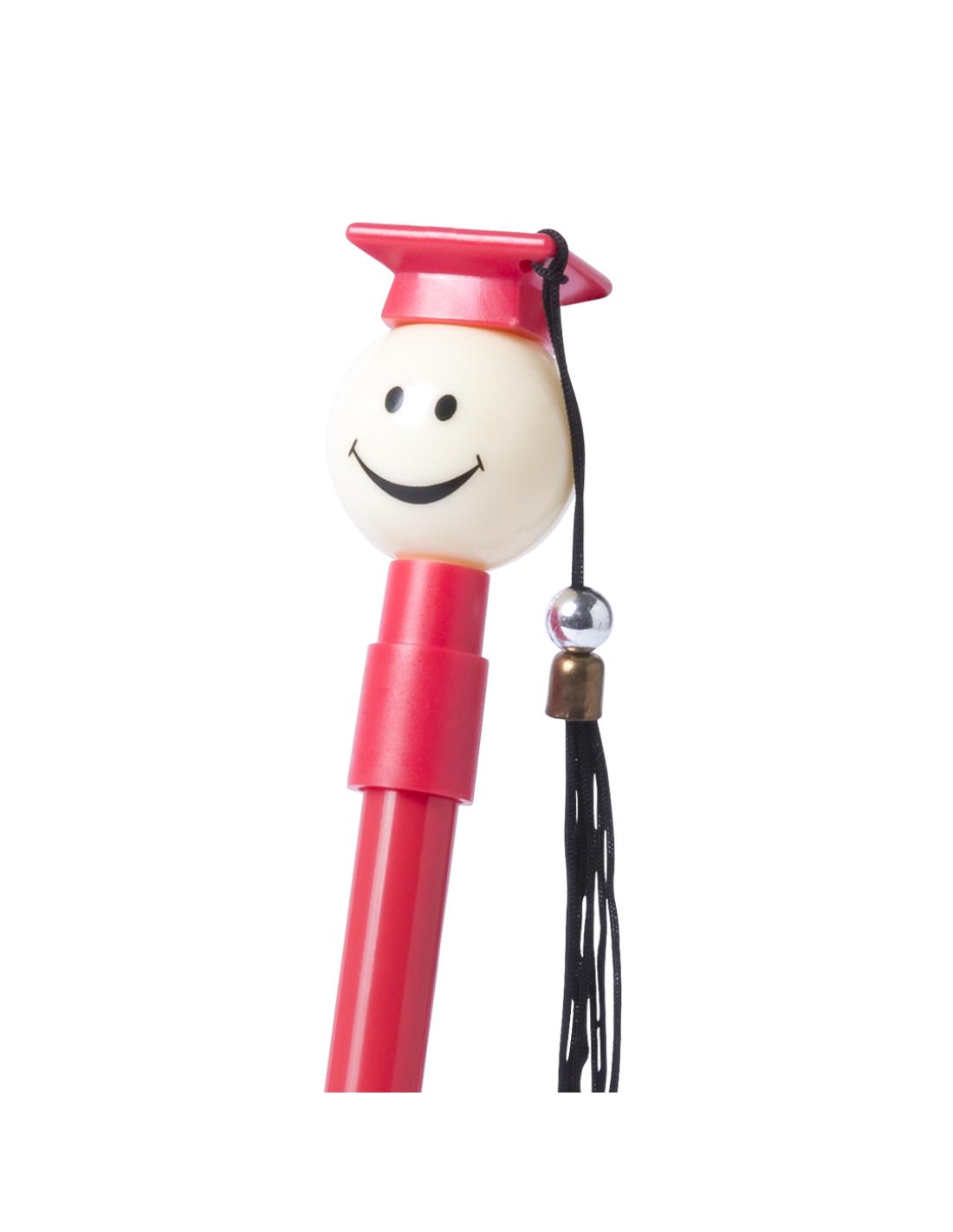 Divertido bolígrafo para los graduados en variada gama de vivos colores. Con pom pom de tela y tinta azul.