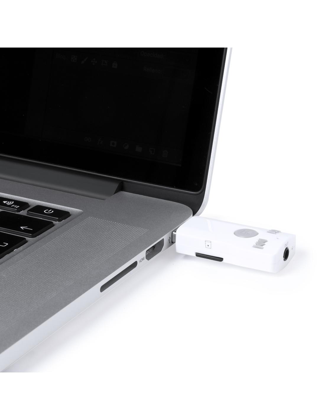Práctico receptor Bluetooth multifunción para coche u hogar, con salida de audio jack de 3,5mm para conexión a la entrada auxiliar de la radio del coche o de cualquier dispositivo con entrada de audio tipo jack de 3,5mm. Panel de control integrado en carcasa, ranura para lectura de tarjetas micro SD de hasta 32GB de capacidad y función manos libres. Incluye cable extensible con conexión jack de 3,5mm a jack de 3,5mm. Presentado en atractiva caja de diseño.