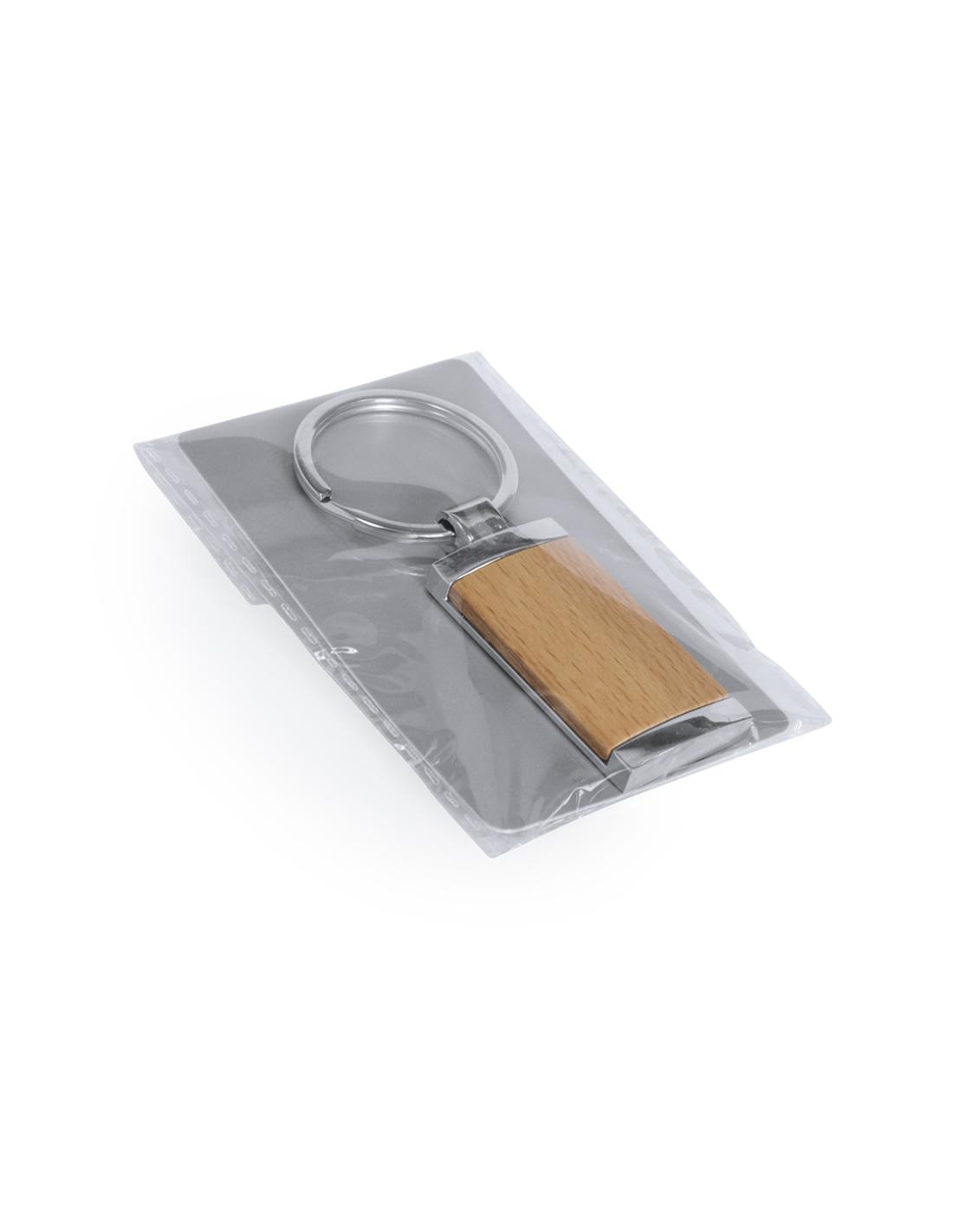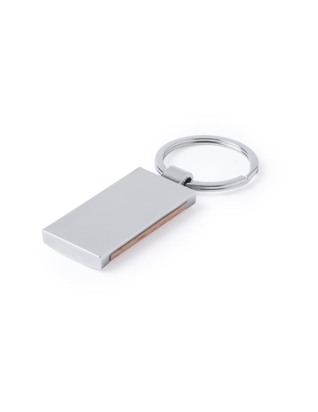 Llavero en combinación de materiales metal de acabado brillante y madera natural. Con amplia superficie para marcaje y presentado en bolsita con refuerzo de cartón en color plateado. Disponible en diseños circular y rectangular.