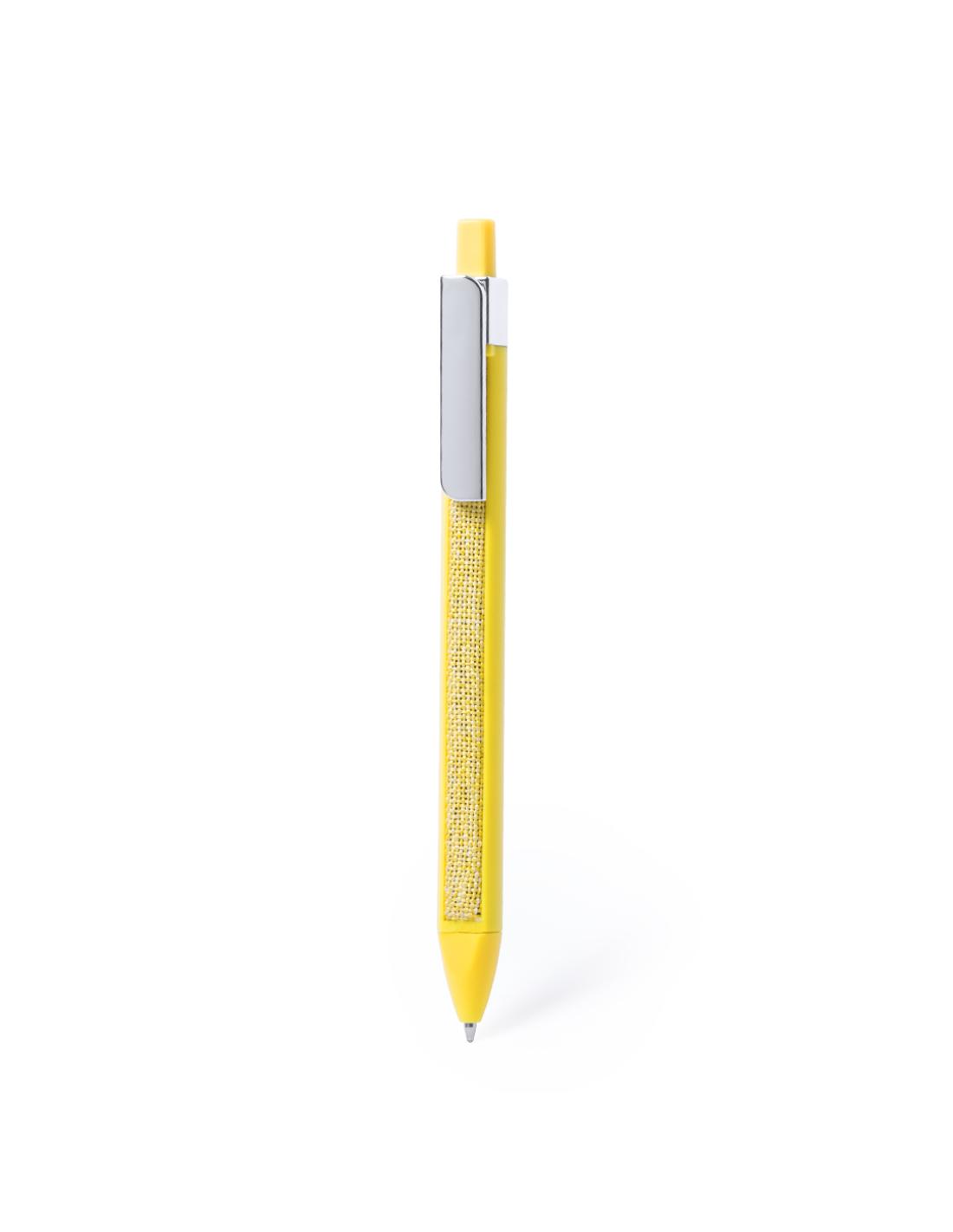 Original bolígrafo de mecanismo pulsador con diseño cuadrangular y suave tira de tela a juego integrada en cuerpo. En variada gama de vivos colores y con clip rectangular para marcaje. Tinta azul.