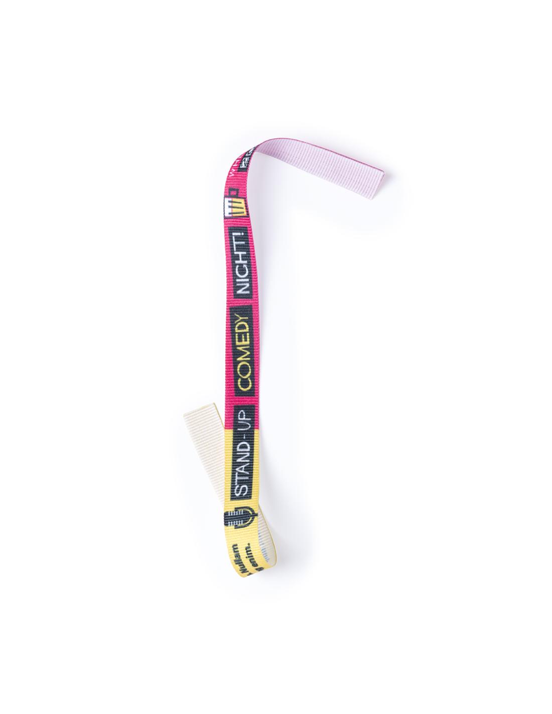 Pulsera en resistente y suave poliéster, especialmente diseñada para personalización total en sublimación para pedidos a partir de 250 piezas.