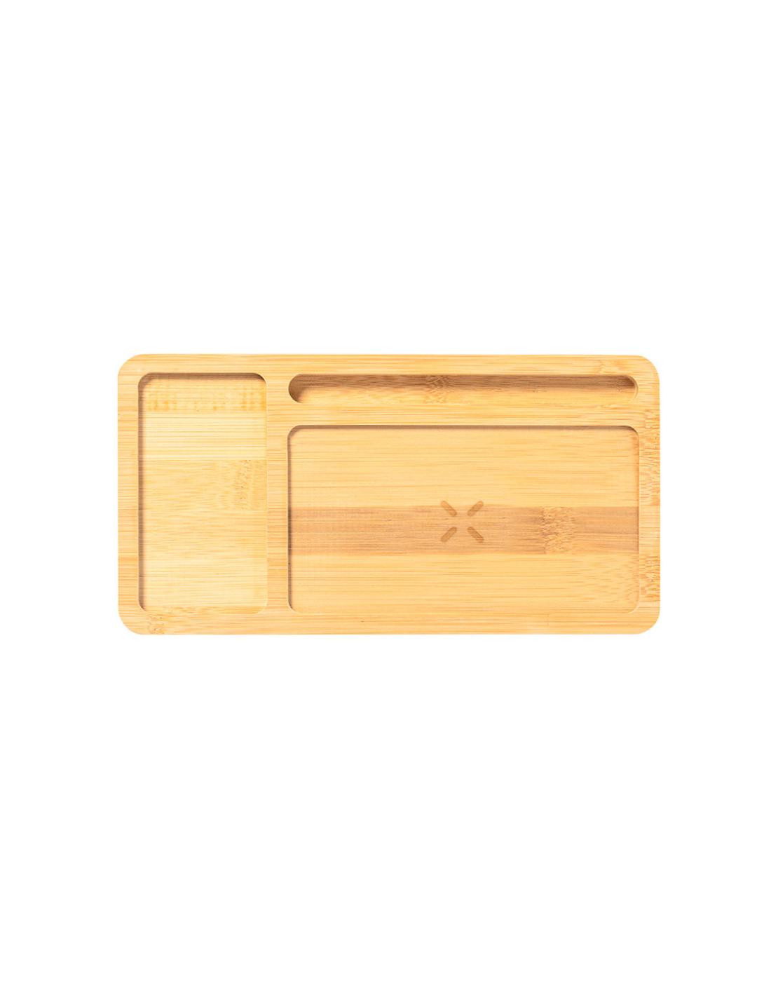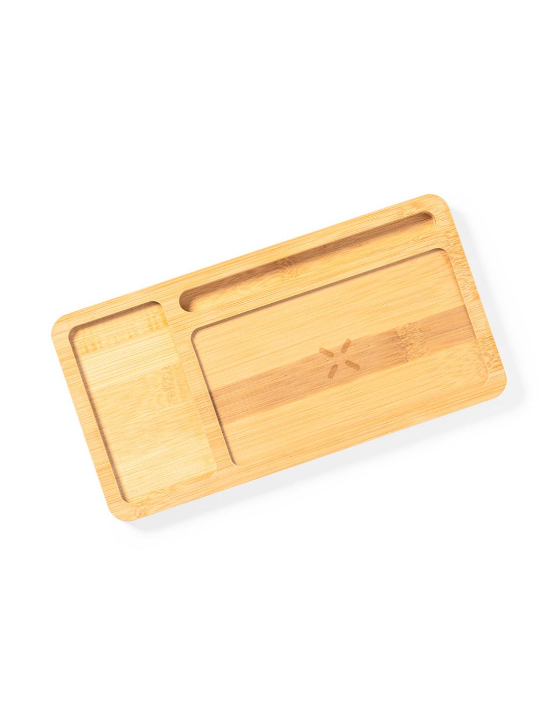 Cargador organizador inalámbrico 15W de línea nature. Con función soporte para smartphone y compartimento extra para objetos. Salida USB de 2.000 mA. Permite cargar de manera simultánea hasta 2 dispositivos (1 mediante carga inalámbrica y 1 mediante cable). Hecho en bambú procedente de cortes naturales y compatible con dispositivos equipados con tecnología de carga inalámbrica. Amplia superficie de marcaje y presentado en caja individual de diseño eco en cartón kraft.