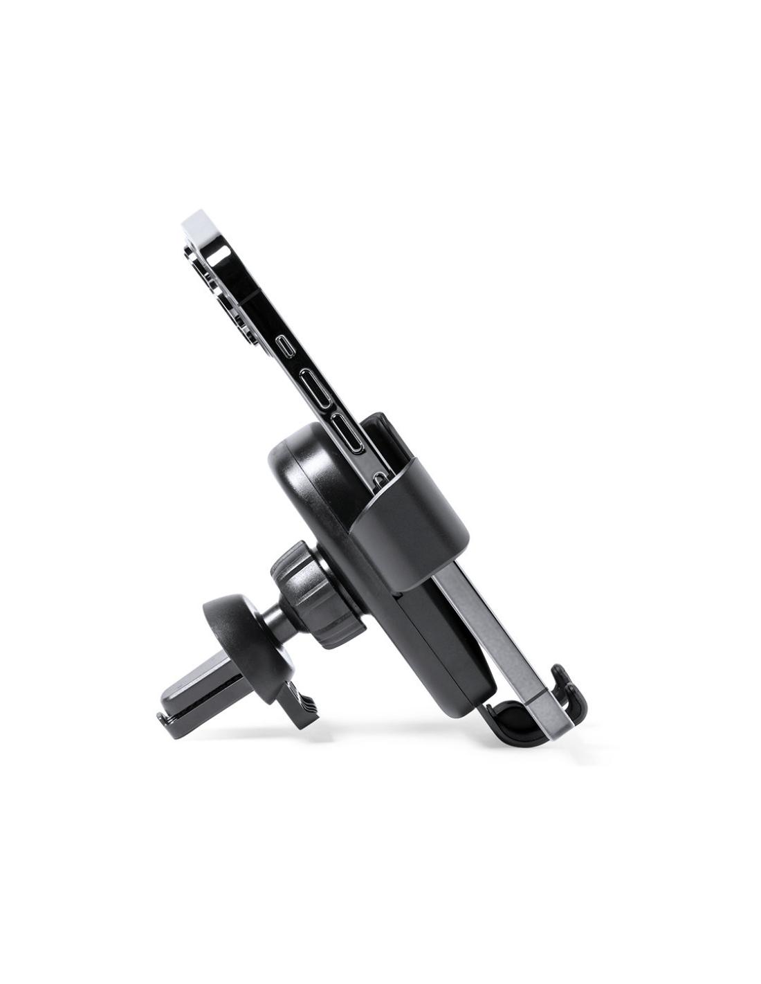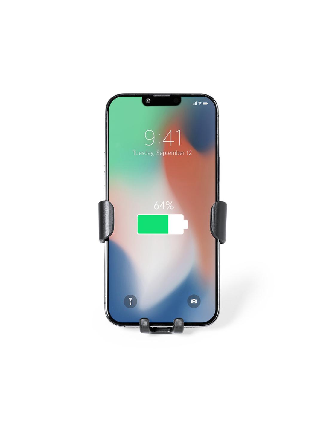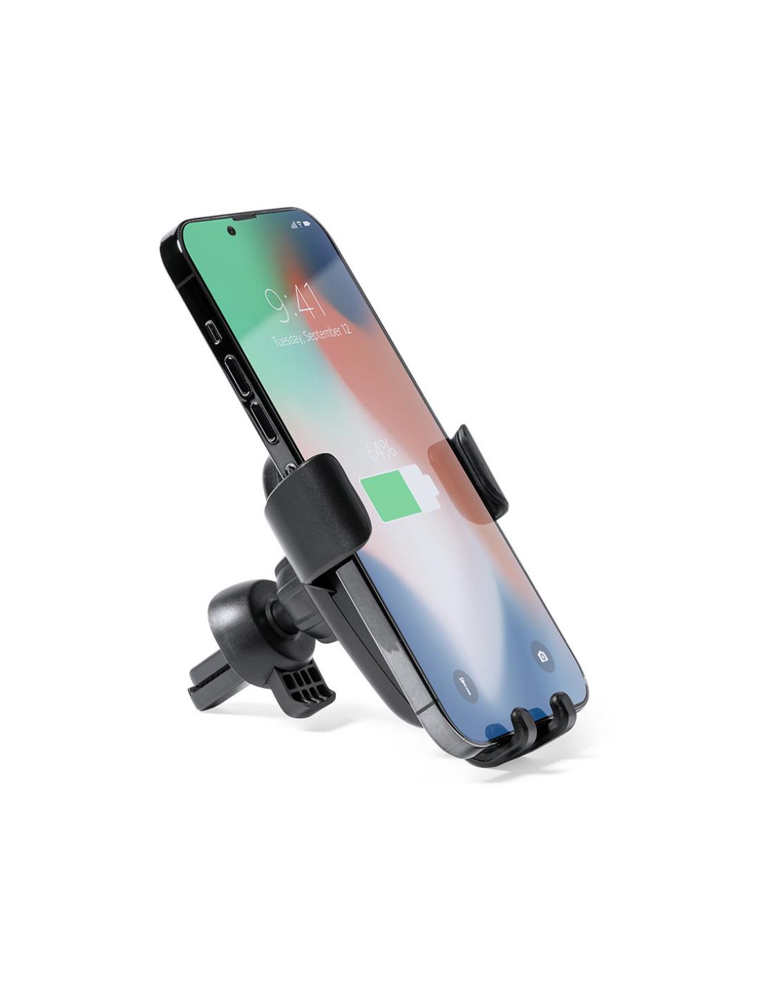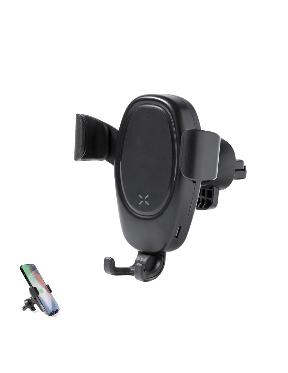 Soporte de rejilla de coche para smartphone con cargador inalámbrico 10W integrado. Mecanismo de ajuste automático universal para poder usar el dispositivo mientras se está cargando. Compatible con dispositivos equipados con tecnología de carga inalámbrica. Presentado en atractiva caja individual de diseño.