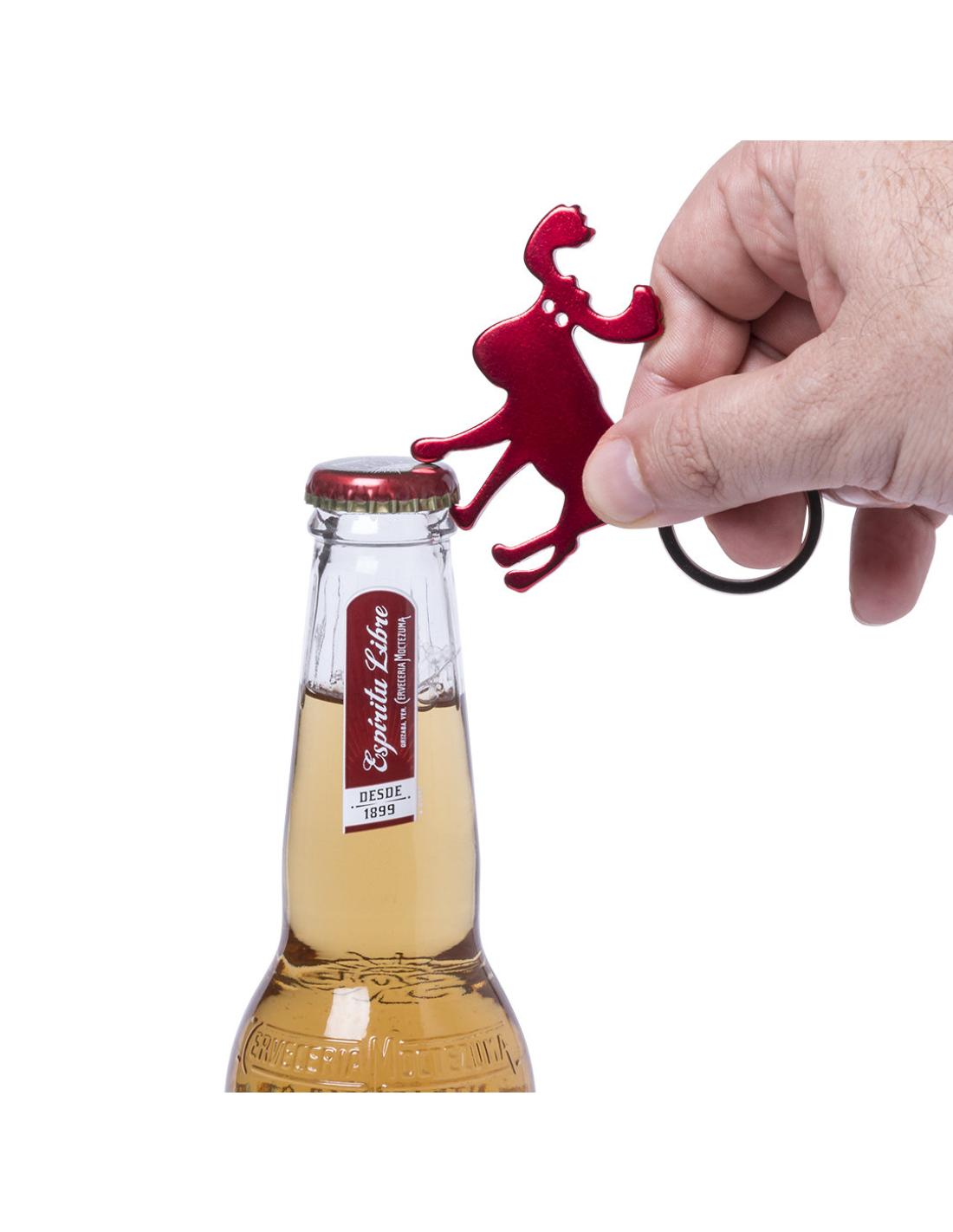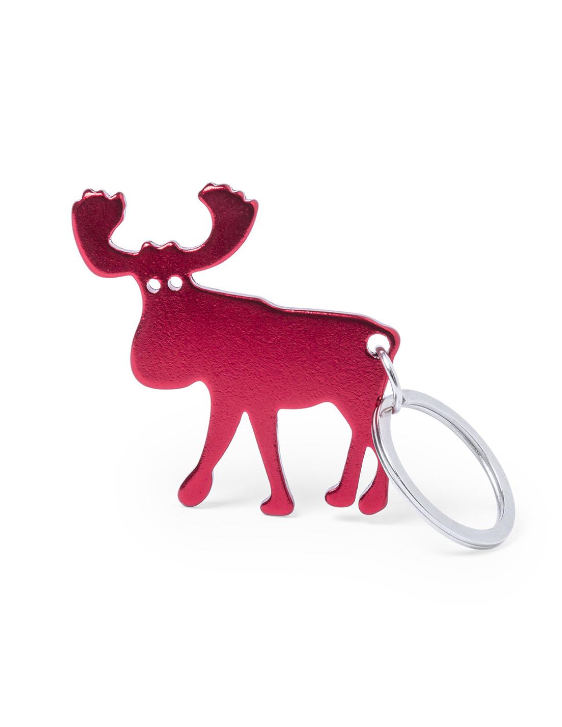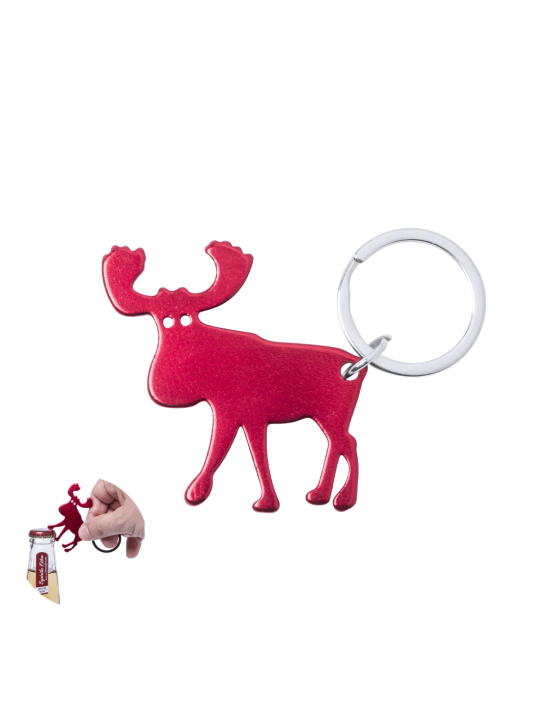 Original llavero abridor en aluminio. Con diseño navideño de reno en vivos colores brillantes.