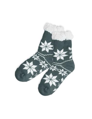 Par de calcetines anti deslizantes con motivos navideños, diseñados para andar por casa. De suave poliéster acrílico exterior y con cálido forro interior.