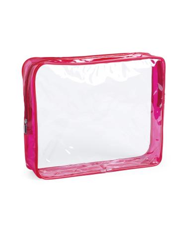 Neceser multiusos en resistente material PVC. Diseño en combinación de materiales translúcidos y transparentes. Disponible en vivos colores, con cierre de cremallera a juego.