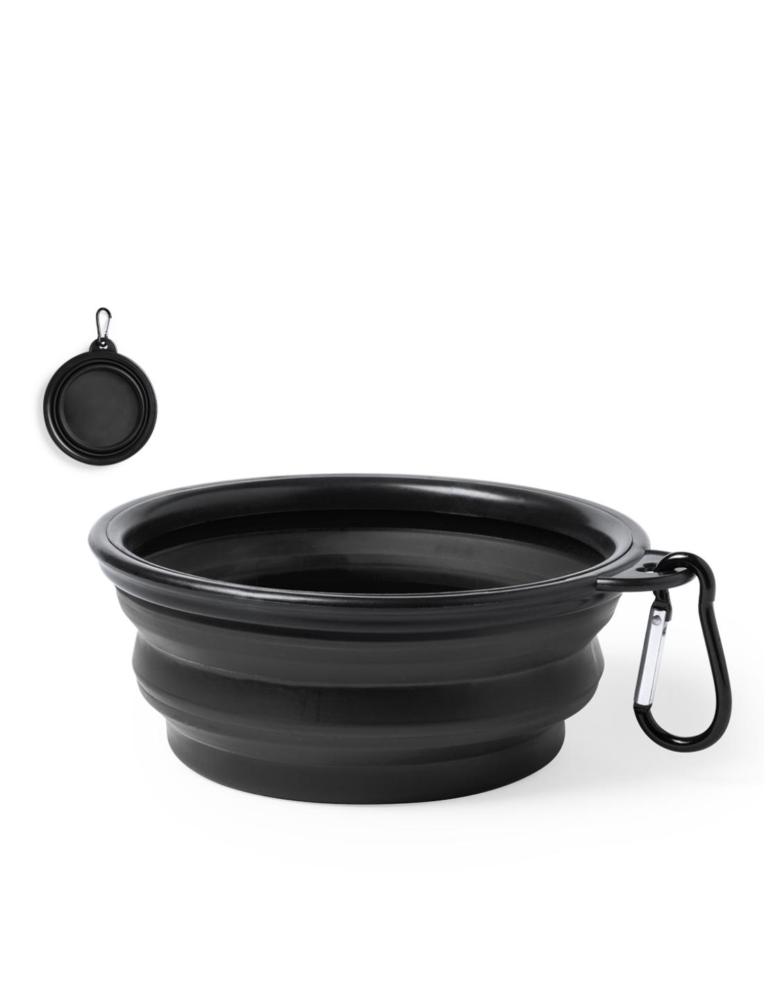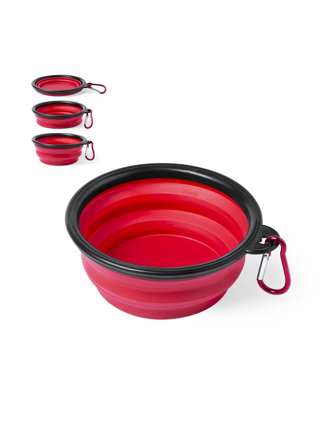 Bowl plegable para mascotas en resistente material TPR. Diseñado para sólidos y líquidos, con 450ml de capacidad y mosquetón de transporte metálico a juego. Disponible en variada gama de colores.