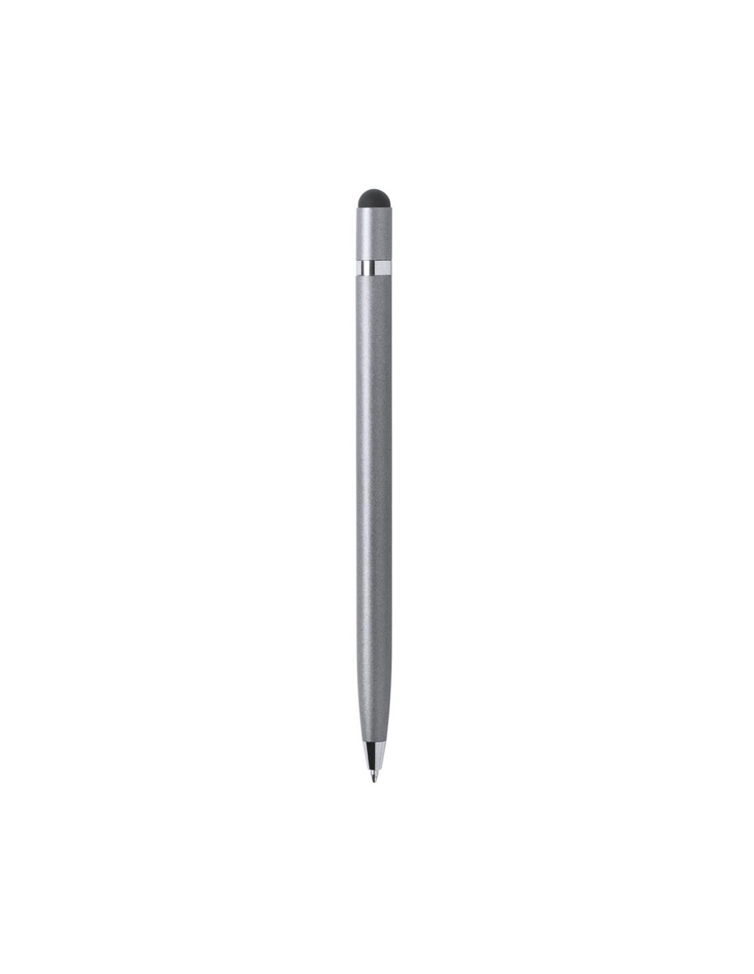 Bolígrafo puntero de mecanismo giratorio con cuerpo en aluminio de suave acabado metalizado. Con anilla cromada. Colores dorado, rosa, plateado y grafito con acabado brillo y color blanco con acabado mate. Tinta azul.