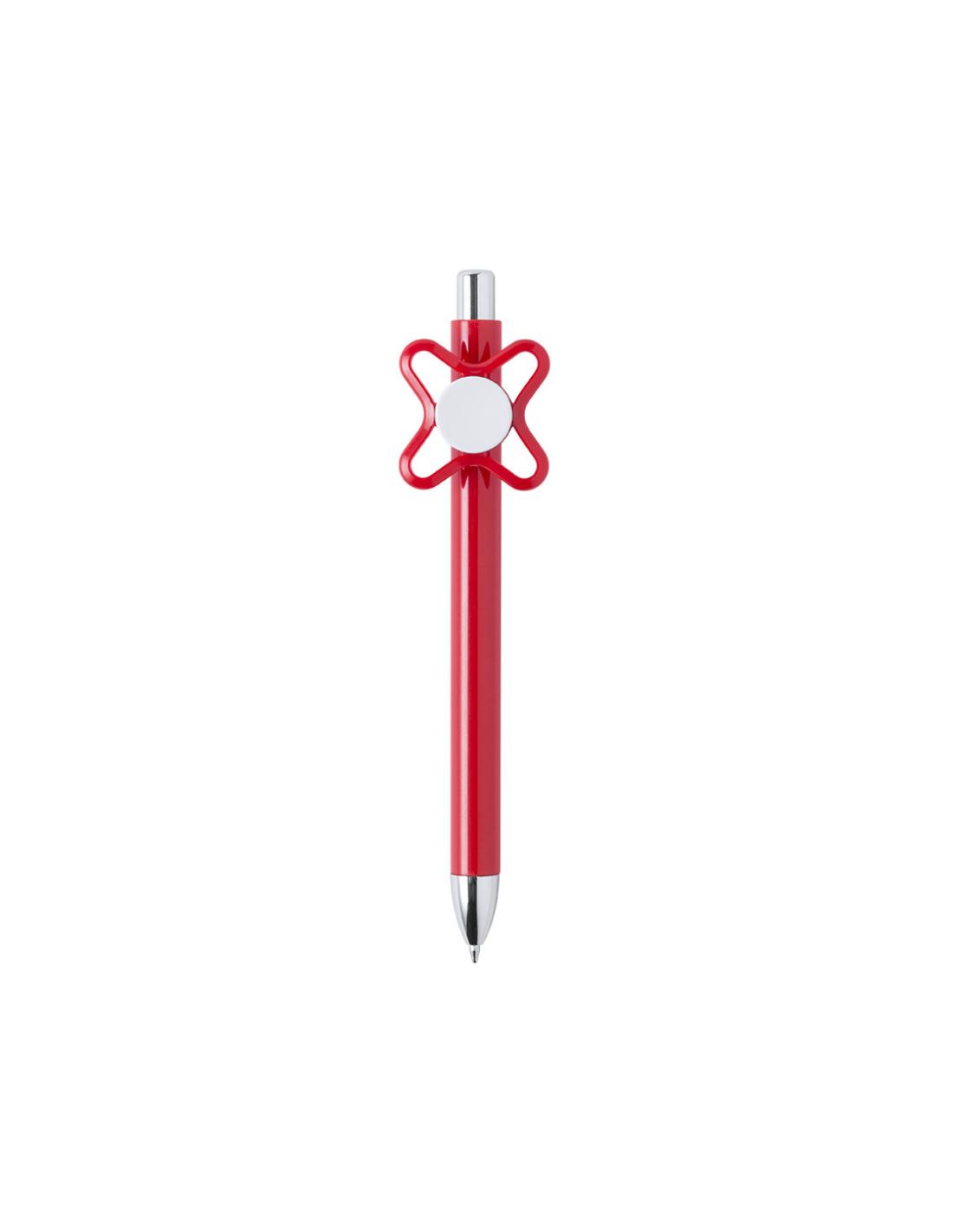 Original bolígrafo spinner antiestrés de mecanismo pulsador y divertido diseño con accesorios en color plateado y cuerpo de acabado sólido en colores brillantes. Especialmente diseñado para tampografía en clip y en cuerpo. De cartucho jumbo y en tinta azul.