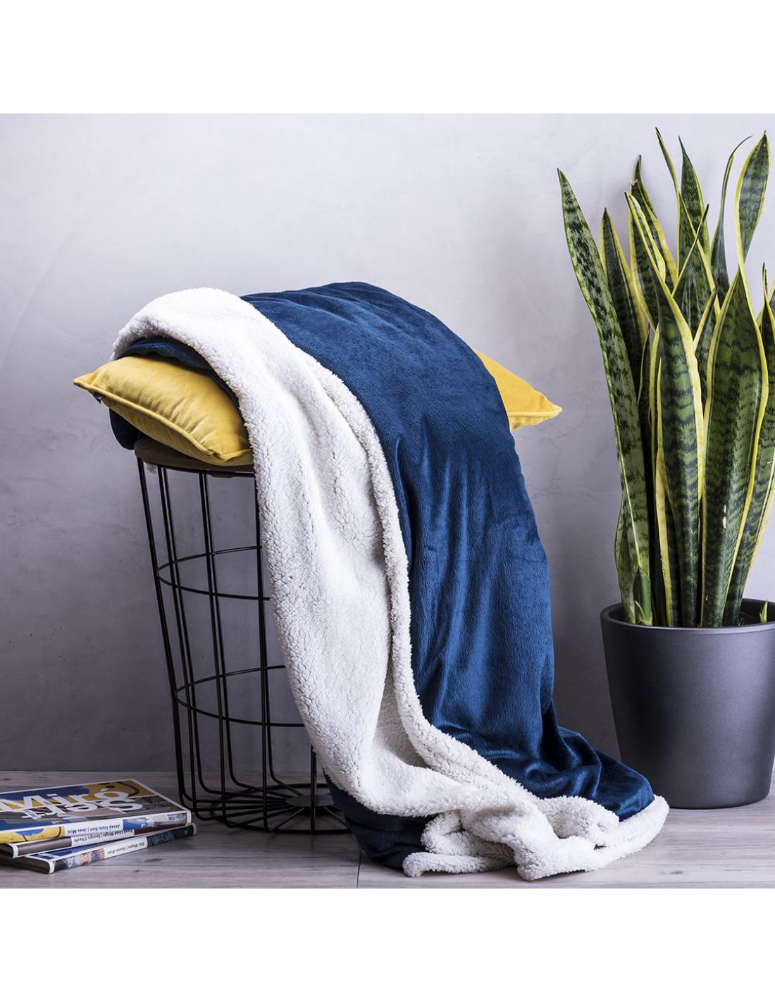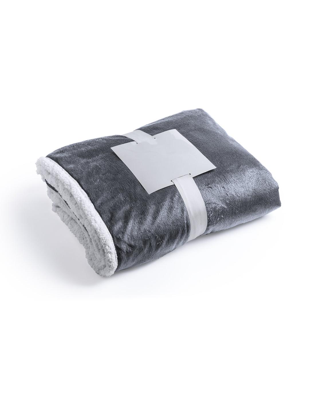 Manta en elegante diseño bicolor de 125x160cm. En suave y cálida combinación de materiales coral fleece y sherpa de 380g/m2. Presentada en cinta con lámina para fácil impresión.