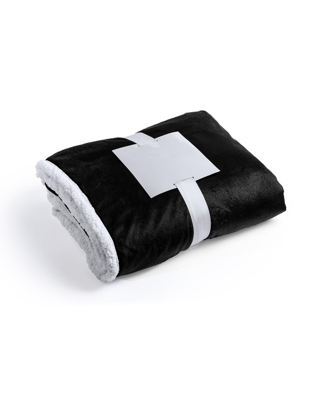Manta en elegante diseño bicolor de 125x160cm. En suave y cálida combinación de materiales coral fleece y sherpa de 380g/m2. Presentada en cinta con lámina para fácil impresión.