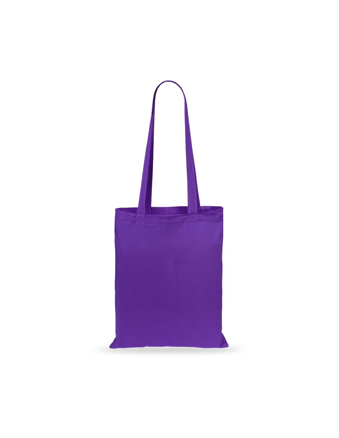 Bolsa fabricada en suave 100% algodón de 140g/m2. Con asas largas reforzadas de 70cm disponible en una amplia gama de colores. Resistencia de hasta 7kg de peso.