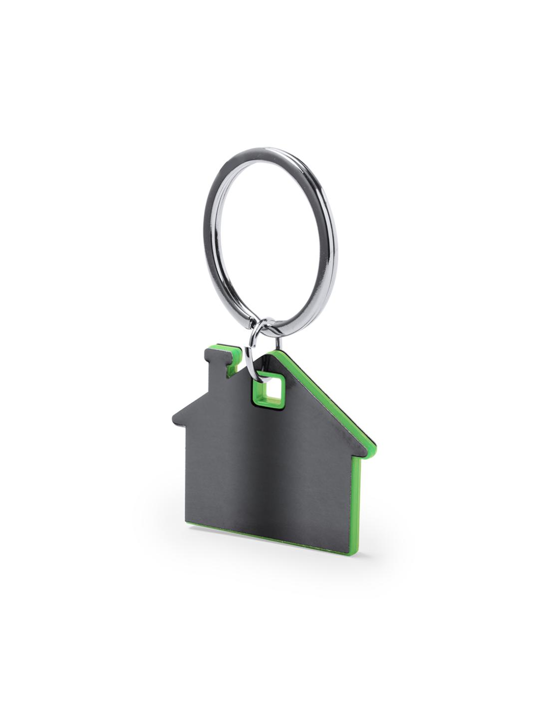 Llavero casita en original diseño con exterior en acero inox de tono gris espacial natural e interior en variada gama de colores. Presentado en bolsita individual con cartulina en elegante color gris.