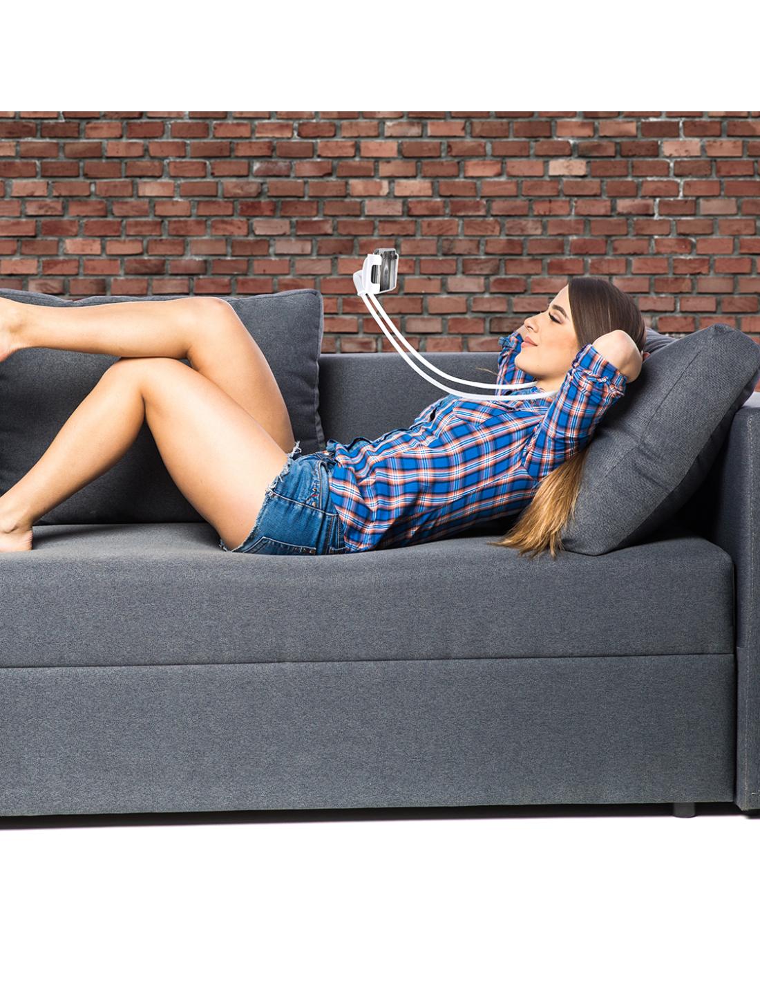 Soporte flexible multiusos para dispositivos móviles. De diseño ergonómico y flexible, muy versátil y cómodo de usar. Soporte para dispositivo móvil de excelente fijación, con acolchado antideslizante. Presentado en atractiva caja de diseño.