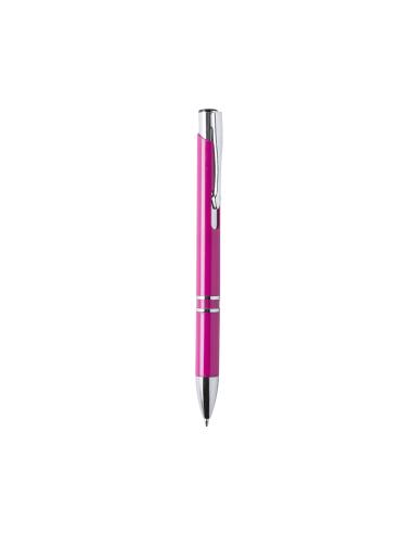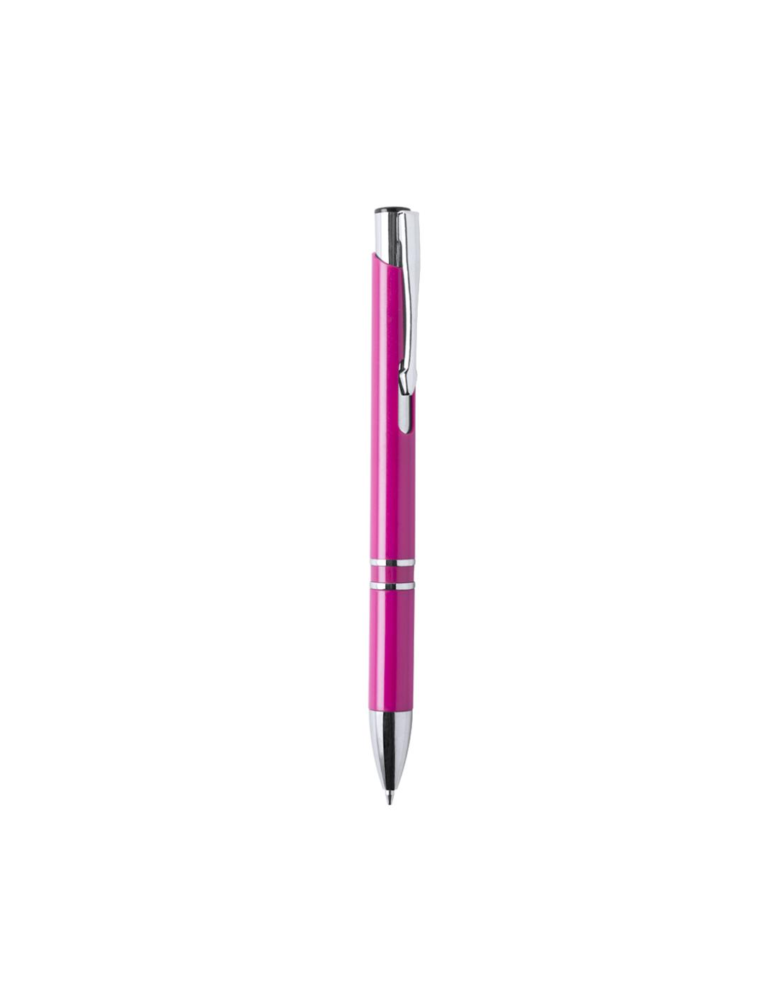 Bolígrafo con cuerpo en brillantes colores. Detalles en cromado y original muesca en cuerpo. De mecanismo pulsador, con cartucho jumbo y tinta azul.