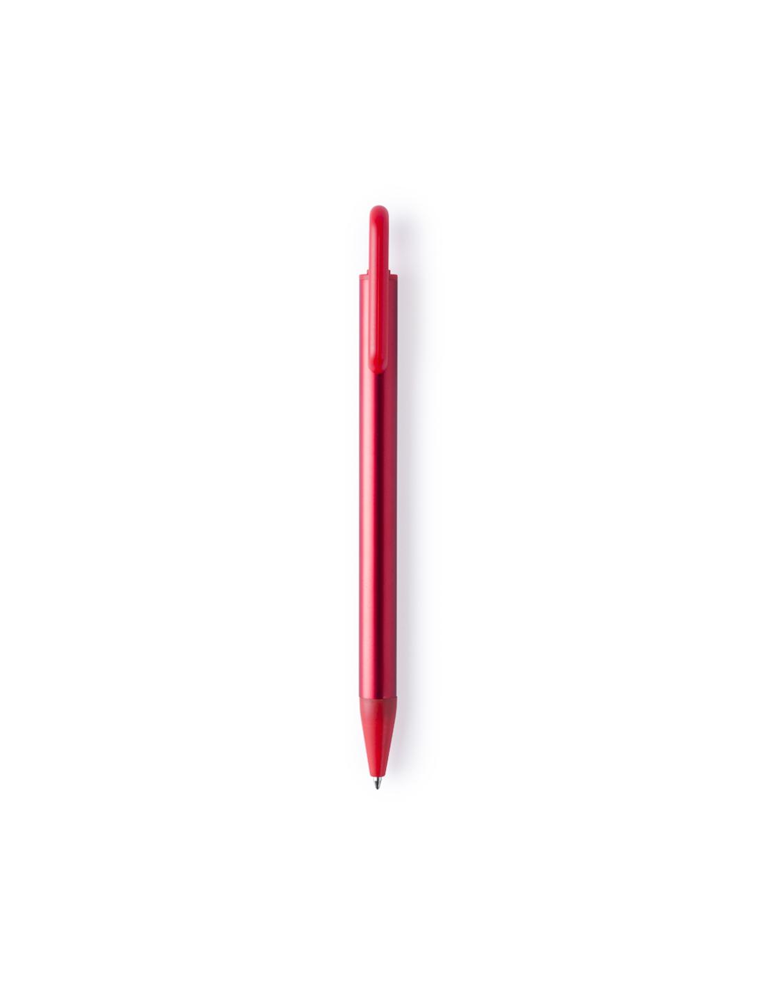 Bolígrafo con cuerpo acabado en aluminio de colores brillantes. Con original clip curvado y punta a juego, de acabado mate. Cartucho jumbo y tinta azul.