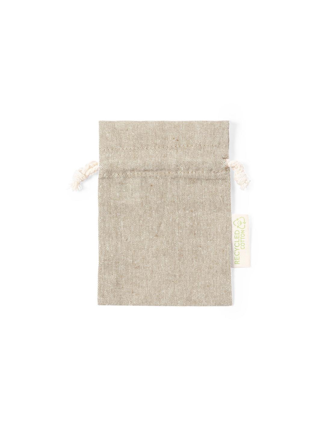 Bolsita de línea nature y tamaño 10x14 cm. Con cierre de cordón y fabricada en 100% algodón reciclado GRS de 120g/m2. Fácil marcaje y especialmente diseñada para pequeños objetos, con distintivo algodón reciclado en etiqueta exterior. Disponible certificación GRS (Global Recycled Standard / Estándar de Reciclaje Global), que garantiza el origen reciclado del material usado para fabricar el producto. Disponible en variada gama de colores.