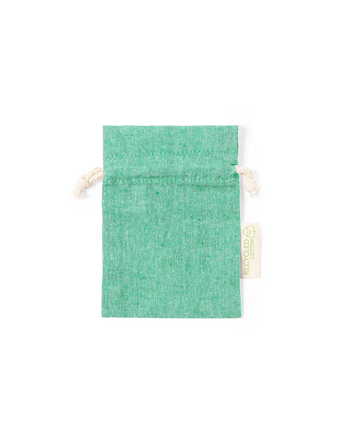 Bolsita de línea nature y tamaño 10x14 cm. Con cierre de cordón y fabricada en 100% algodón reciclado GRS de 120g/m2. Fácil marcaje y especialmente diseñada para pequeños objetos, con distintivo algodón reciclado en etiqueta exterior. Disponible certificación GRS (Global Recycled Standard / Estándar de Reciclaje Global), que garantiza el origen reciclado del material usado para fabricar el producto. Disponible en variada gama de colores.