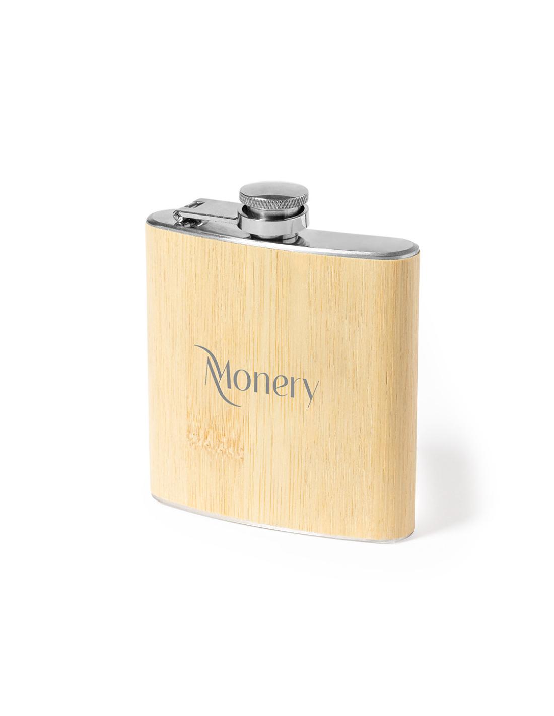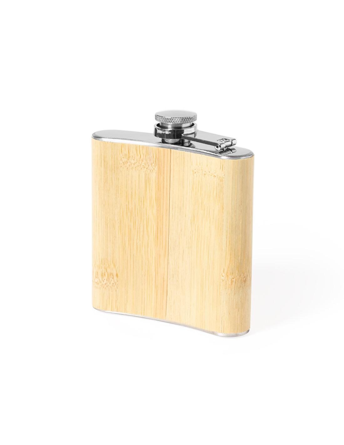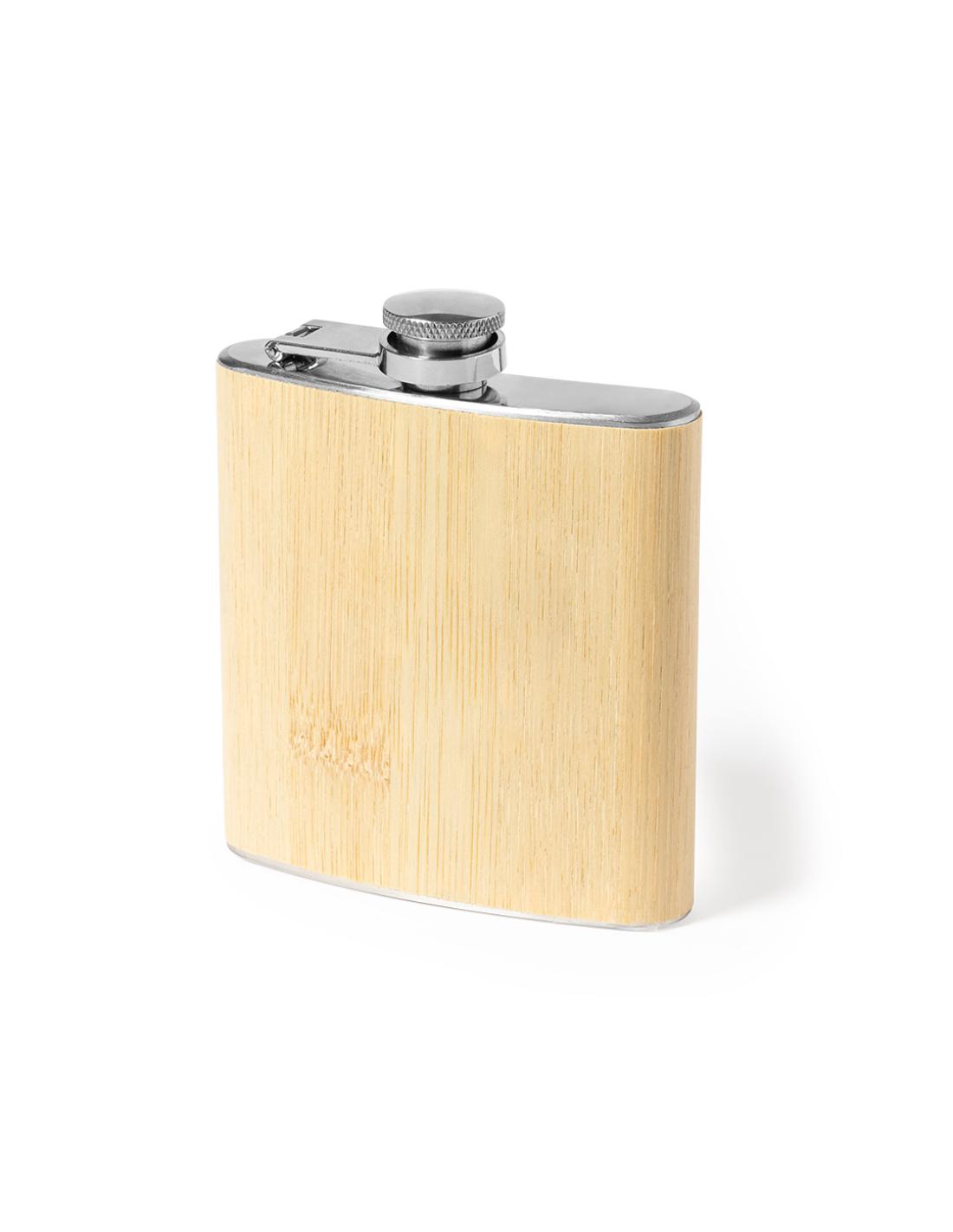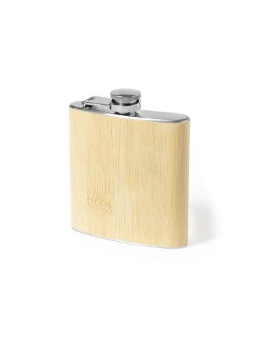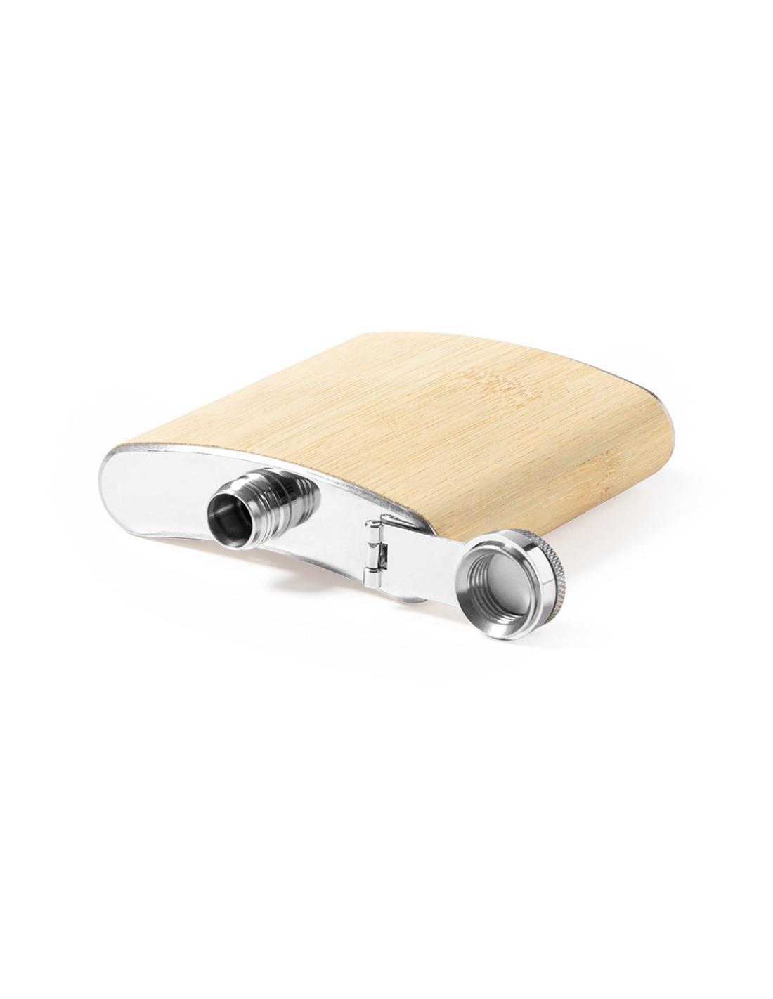 Petaca de línea nature y 170 ml de capacidad. Exterior en bambú de suave acabado, con cuerpo de acero inox y tapón de seguridad a rosca. De diseño ergonómico para guardar cómodamente en el bolsillo. Presentada en caja individual de diseño eco en cartón kraft.