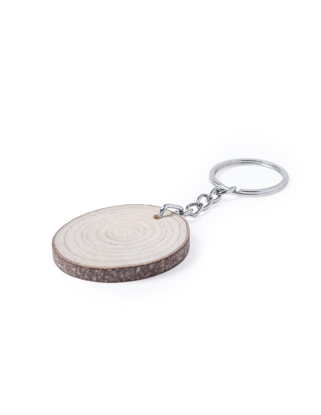 Elegante llavero de línea nature. Piezas obtenidas al corte de madera de haya, por lo que su textura, color y grosor pueden variar, convirtiéndolo así en una pieza única.Con amplia superficie de marcaje y disponible en diseños ovalado y redondeado.
