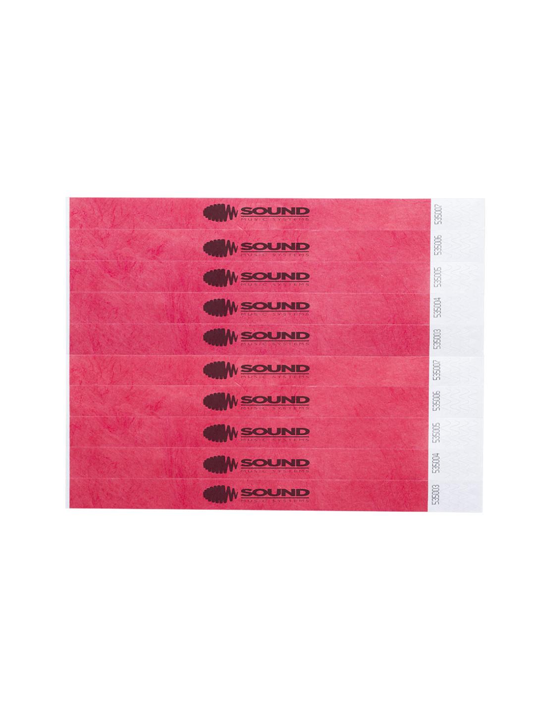 Pulsera para eventos en fibra sintética y variada gama de vivos colores. Con cierre adhesivo, resistente al agua y presentada en plancha troquelada de 10 piezas con numeración individual.
