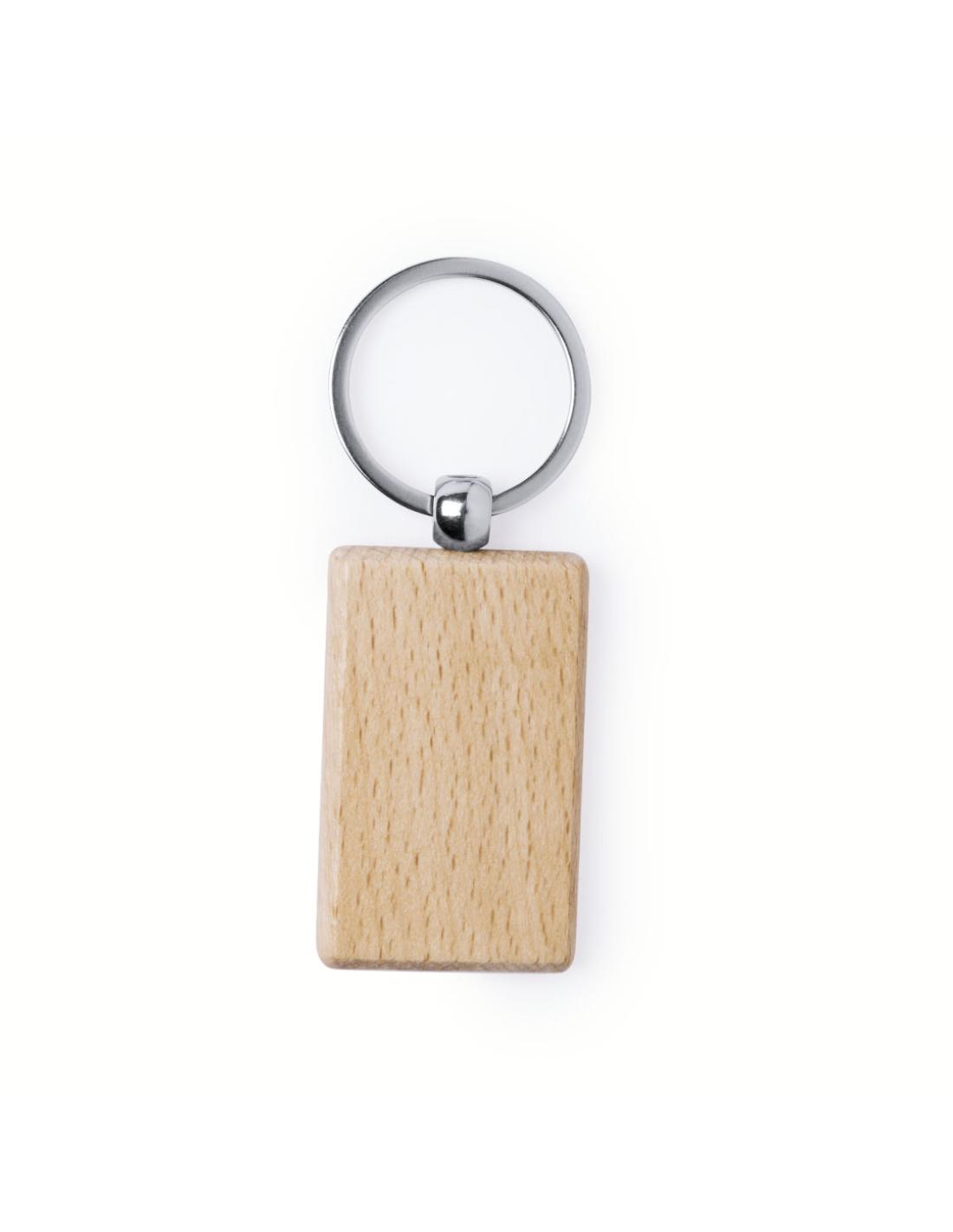 Elegante llavero de línea nature fabricado en madera natural de haya. Con amplia superficie de marcaje y disponible en diseños rectangular y redondo.