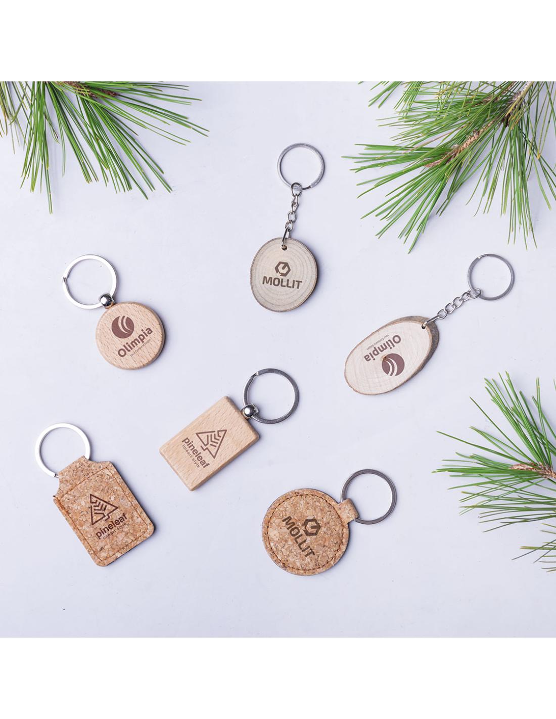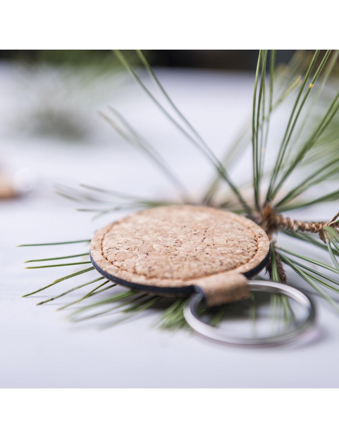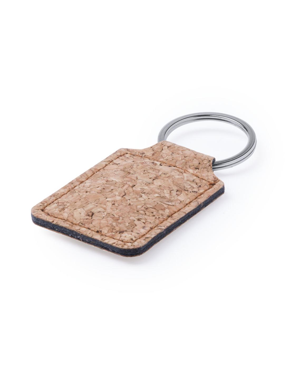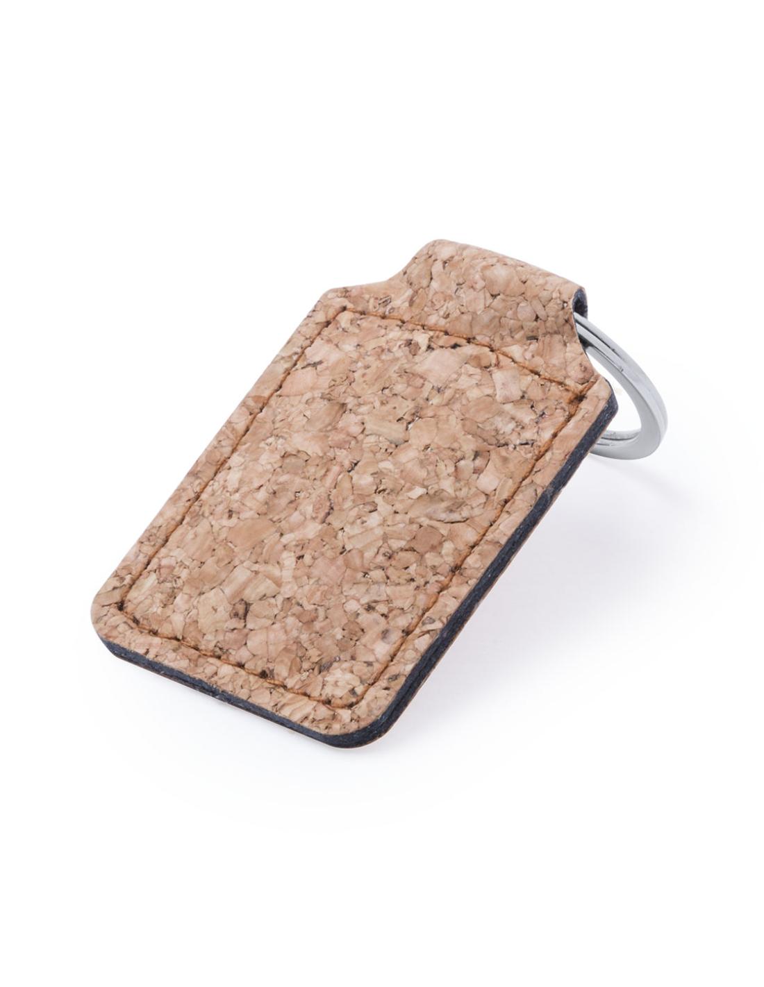 Elegante llavero de línea nature fabricado en corcho natural. Con amplia superficie de marcaje y disponible en diseños rectangular y redondo.