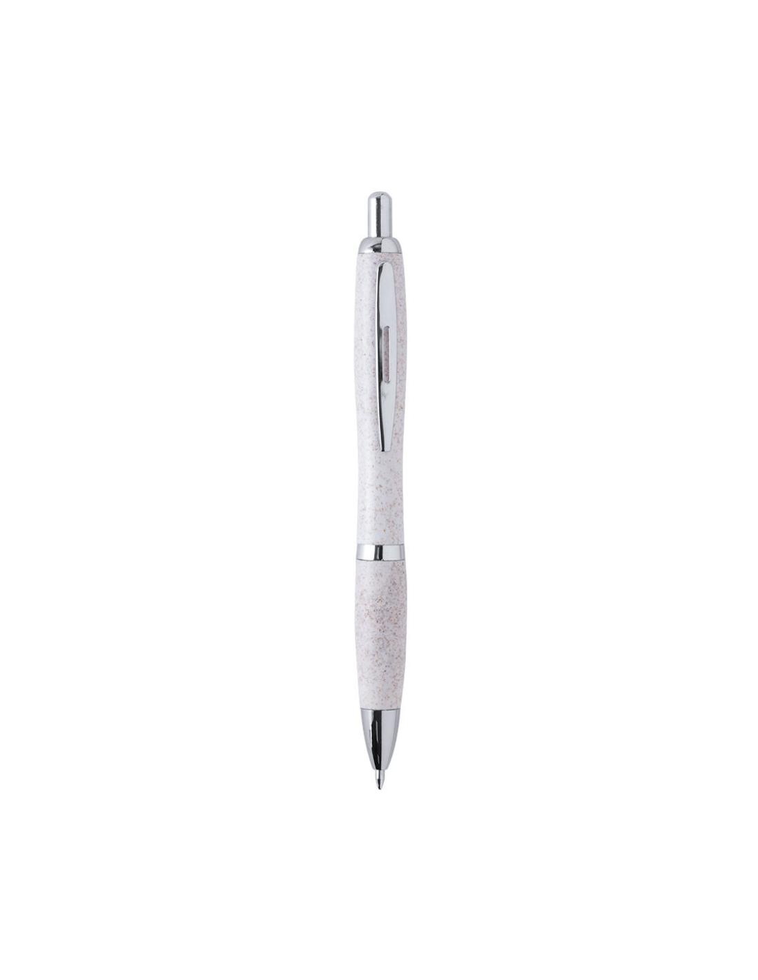 Bolígrafo de línea nature con cuerpo en caña de trigo, para así fomentar la utilización de materias primas naturales y reducir las emisiones contaminantes. De mecanismo pulsador, con detalles cromados y clip troquelado, cartucho jumbo y tinta azul. Disponible en variada gama de colores.