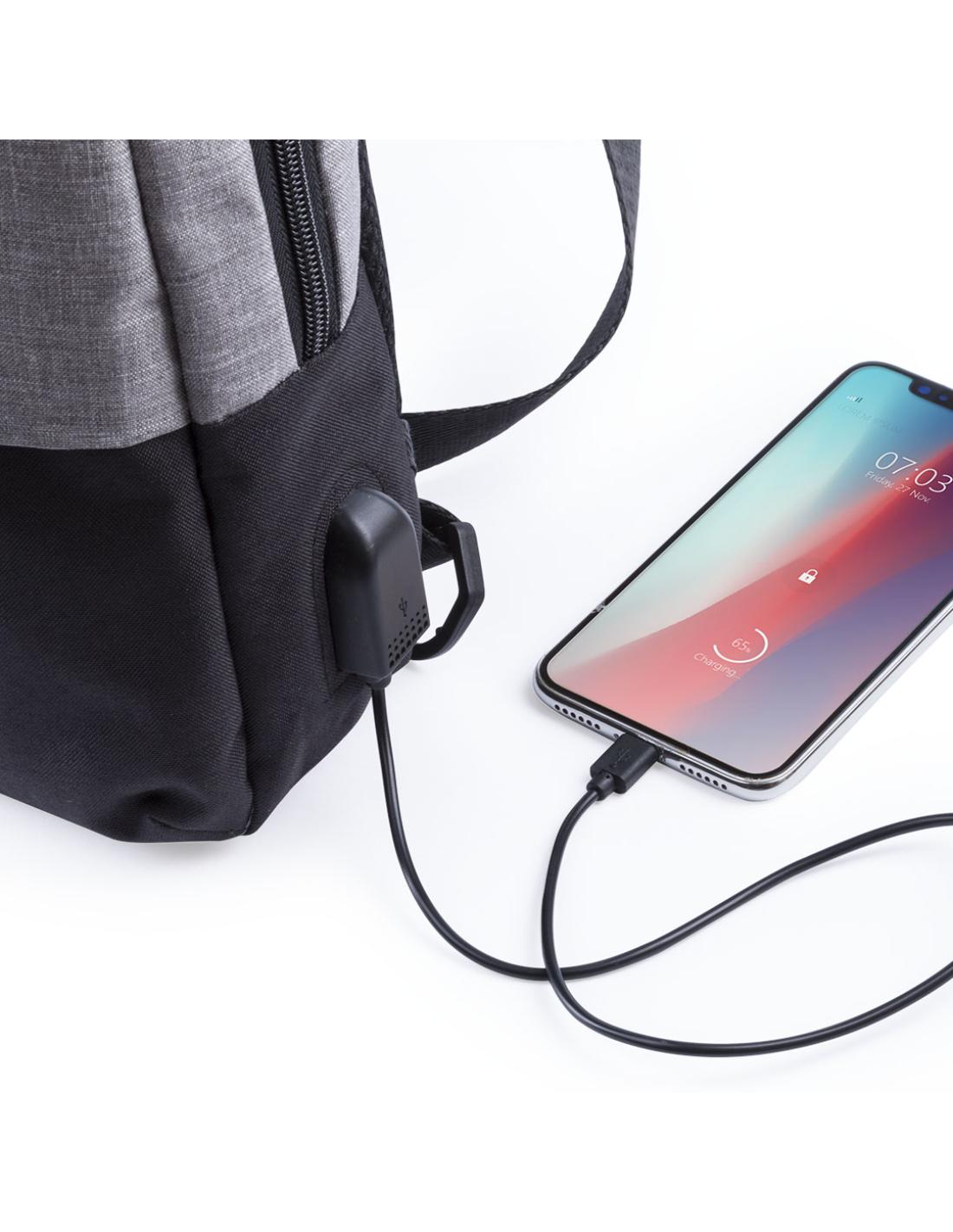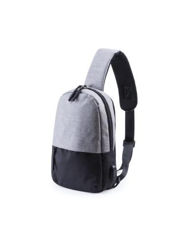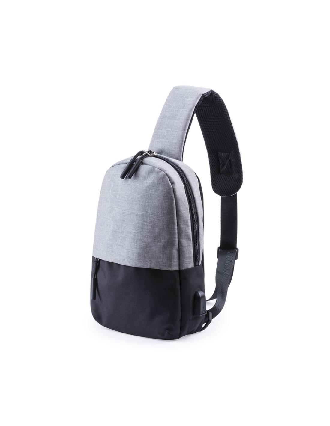Bandolera multiusos en resistente poliéster 300D. De atractivo diseño urbano, en combinación de colores gris denim y negro. Con conexión USB para carga -powerbank y cable no incluídos- y bolsillo acolchado para tablet de hasta 10 pulgadas. Espalda y cinta acolchadas, con cinta de ajuste regulable. Bolsillo principal de fácil apertura, con cierre de cremallera y resistentes tiradores.
