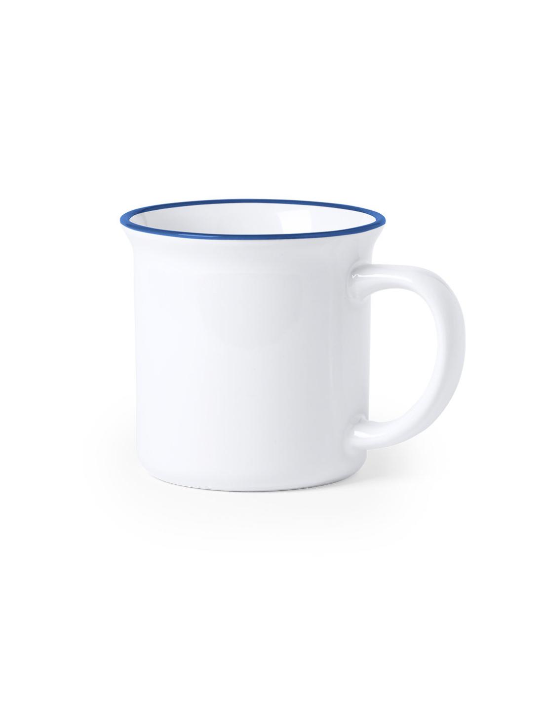 Taza de cerámica de 300ml de capacidad con diseño vintage. En elegante diseño bicolor, con anilla coloreada en el borde y cuerpo en color blanco. Especialmente diseñada para marcaje en sublimación. Presentada en caja individual.Disponible manual de instrucciones en español e inglés.