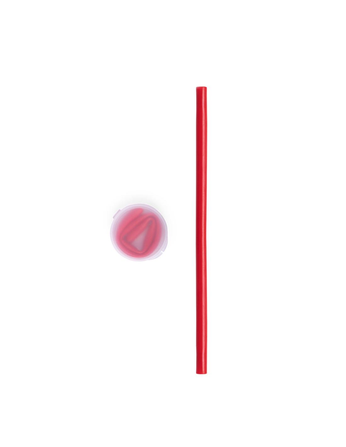 Pajita de silicona flexible y reutilizable, de 25,5cm de largo. Disponible en variada gama de colores brillantes y presentada en estuche de PP con acabado translúcido.