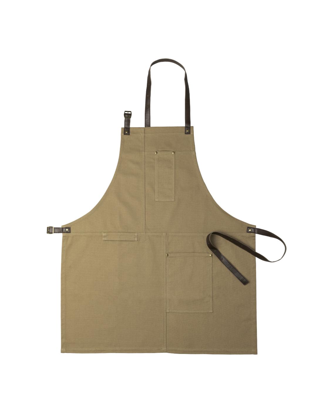 Delantal pro de alta calidad en resistente material 100% algodón canvas de 340g/m2. De corte por debajo de la rodilla, con cintas de cuello y cintura en resistente polipiel con ajuste mediante hebilla y reforzado con remaches metálicos. Incluye multitud de bolsillos para los distintos utensilios, con las costuras reforzadas.