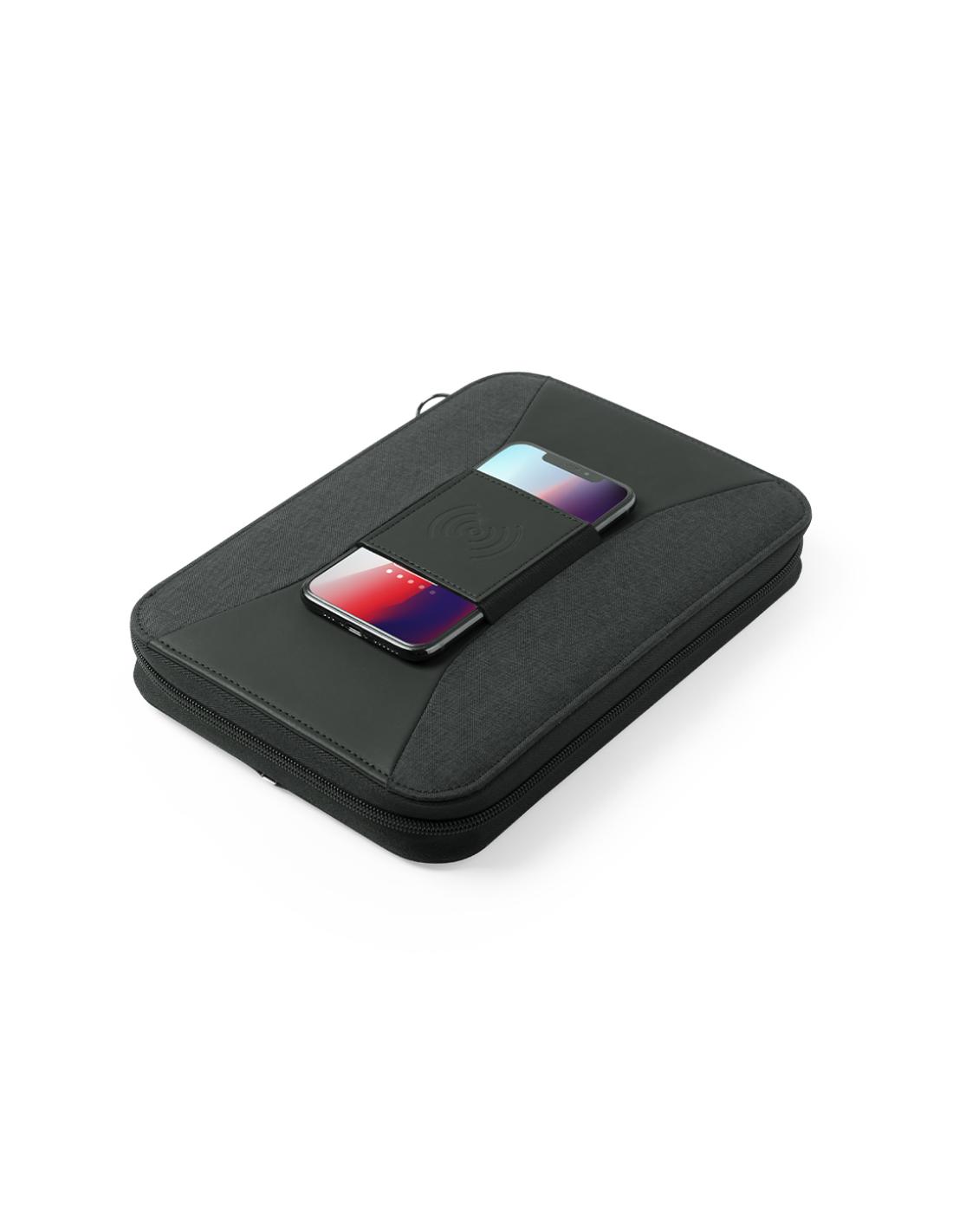 Completo organizador power bank en combinación de materiales poliéster 300D y polipiel. Cargador inalámbrico integrado en la portada, con soporte para sujeción del smartphone. Incluye batería auxiliar de 4.000 mAh de capacidad de carga integrada. De sobrio diseño y cierre de cremallera, incluye bloc de notas de 64 hojas con disposición a una raya, soporte para bolígrafo y tarjetero. Salida USB, con cable micro USB incluido y presentado en elegante caja negra. Las capacidades mostradas en todas nuestras baterías auxiliares externas son reales, incorporando todas ellas baterías de grado A y no recicladas, con una vida útil de al menos 500 ciclos de carga y según normativa CE. Además, están fabricadas conforme a los estándares RoHS y en cumplimiento con los siguientes requisitos de seguridad: Sistema...