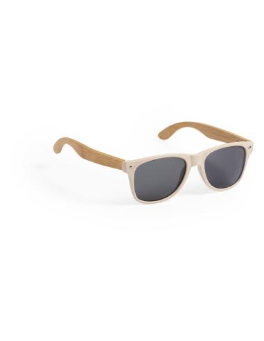 Gafas de sol de línea nature con protección UV400. Con montura en fibra de bambú y patillas en bambú. Lentes tintadas a juego.