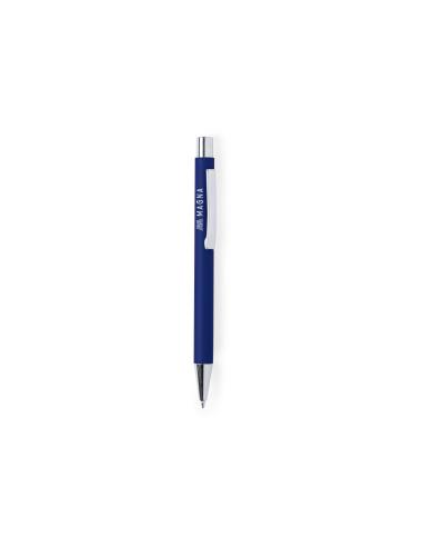 Original bolígrafo de mecanismo pulsador en elegante diseño bicolor. Con cuerpo de aluminio en tacto goma de acabado mate. Especialmente diseñado para marcaje en láser y mostrar el logotipo en tono plateado. Clip, parte superior y punta en plateado. Disponible en variada gama de colores, con cartucho jumbo y tinta azul.