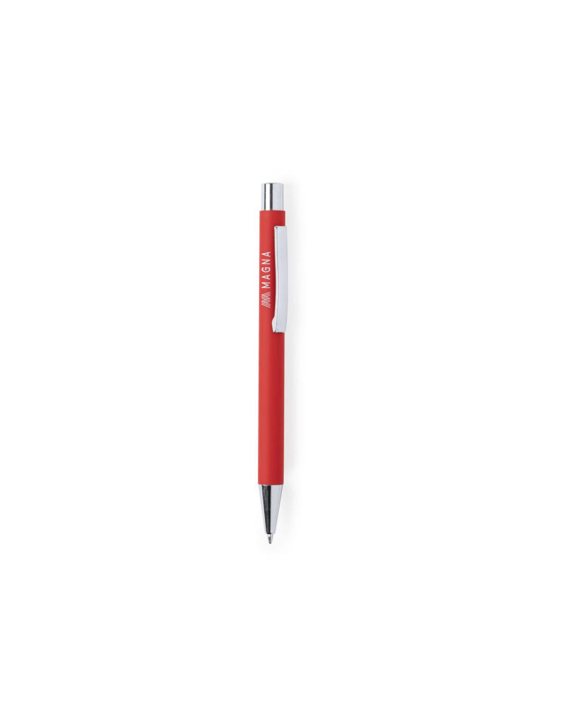 Original bolígrafo de mecanismo pulsador en elegante diseño bicolor. Con cuerpo de aluminio en tacto goma de acabado mate. Especialmente diseñado para marcaje en láser y mostrar el logotipo en tono plateado. Clip, parte superior y punta en plateado. Disponible en variada gama de colores, con cartucho jumbo y tinta azul.