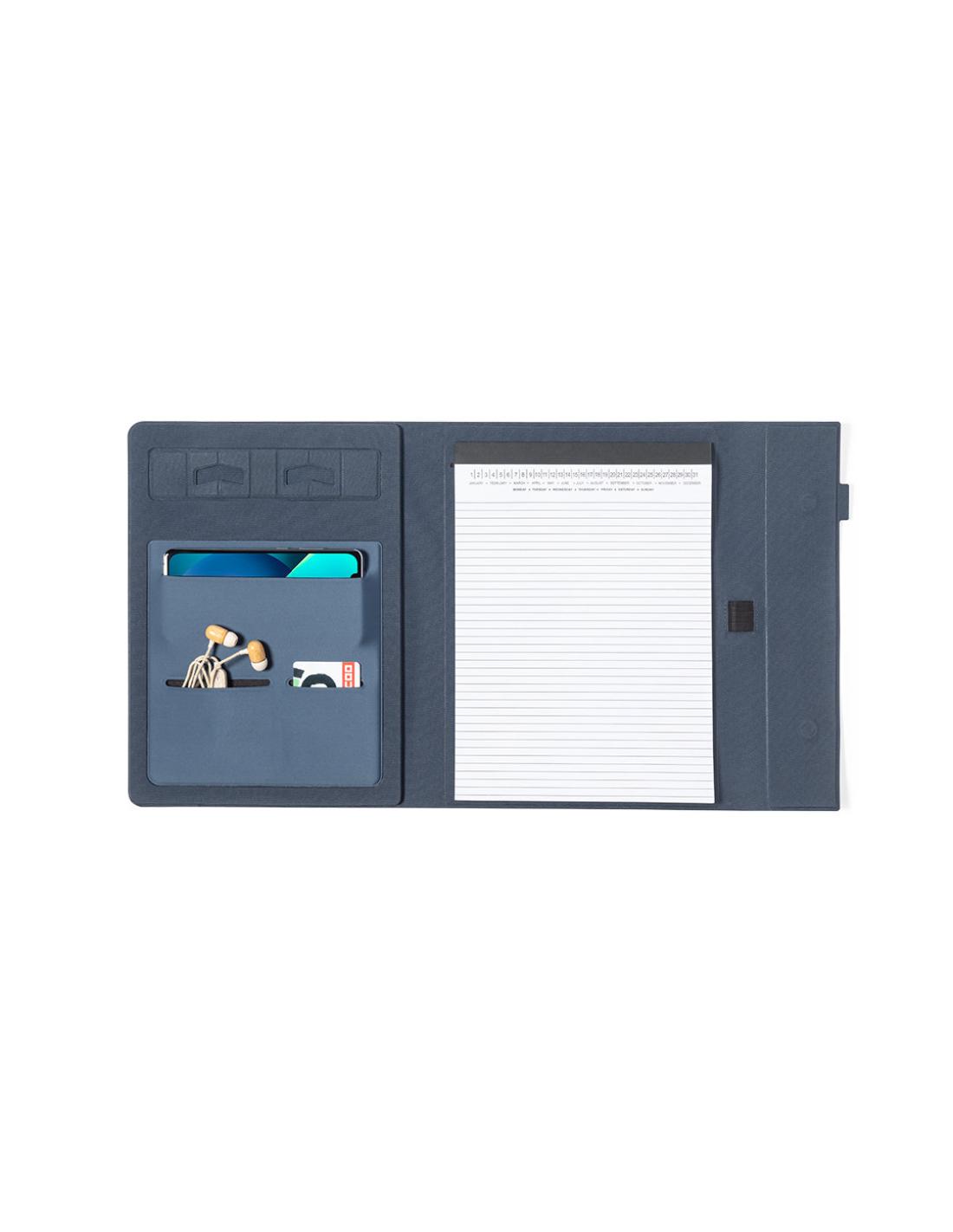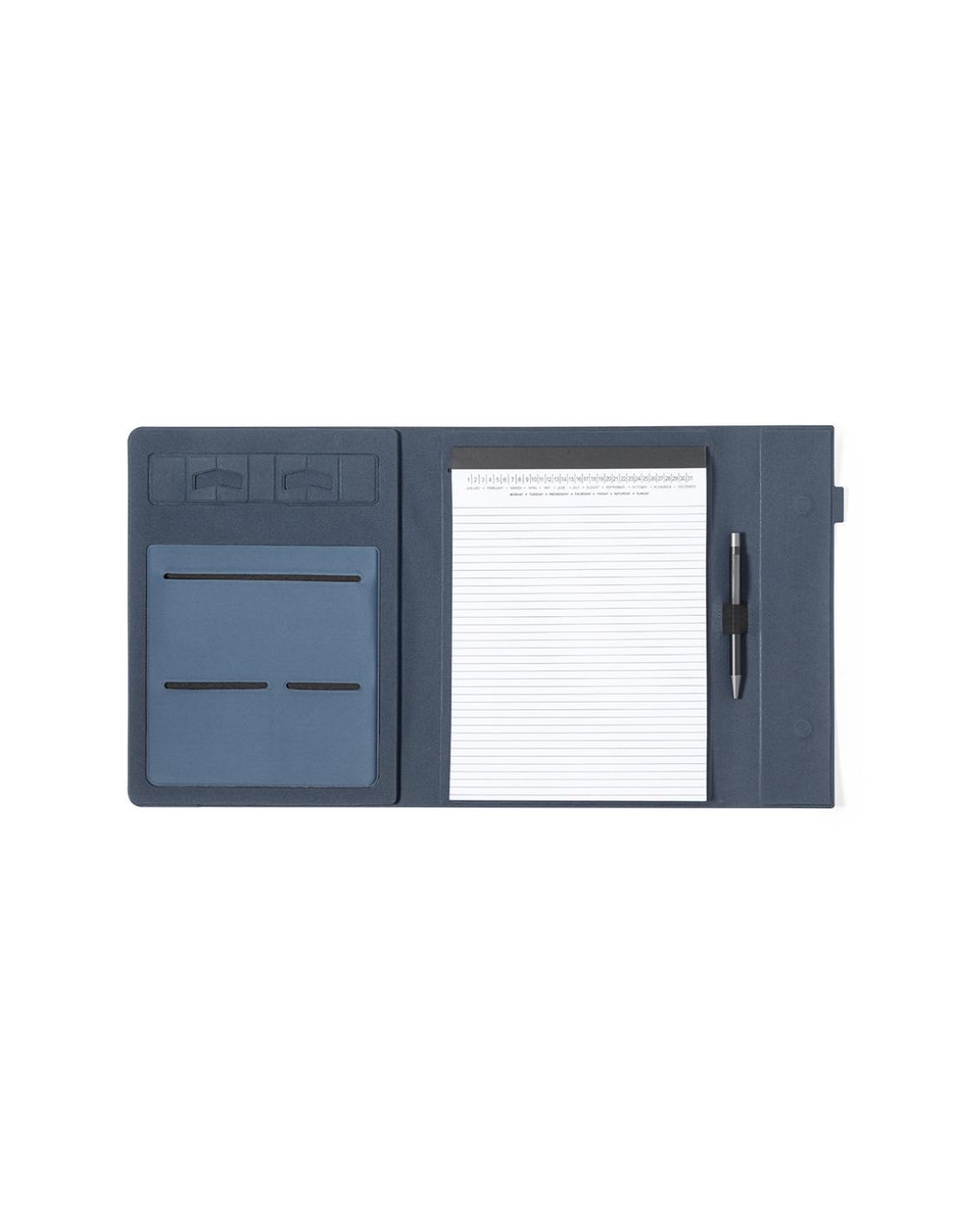 Carpeta fabricada en poliéster 600D RPET, elaborado a partir de plástico reciclado, para así fomentar la reutilización de residuos plásticos y ayudar a la sostenibilidad del planeta. Con cierre magnético y distintivo RPET. Interior con soporte para smartphone y multitud de compartimentos para tarjetas, incluidos soporte para bolígrafo y bloc con 20 hojas de disposición a una raya. Presentada en atractiva caja individual de diseño y disponible en variada gama de colores.