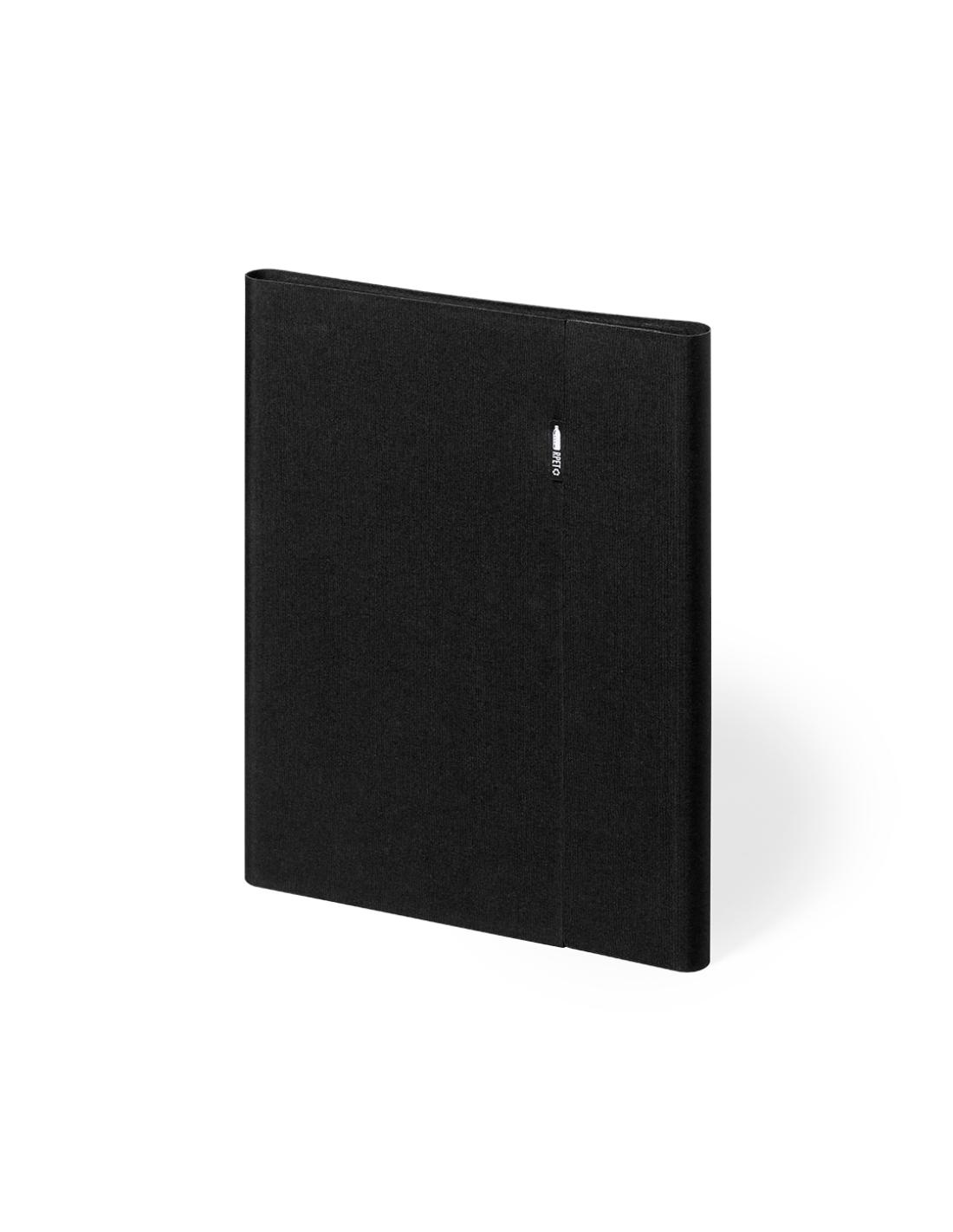 Carpeta fabricada en poliéster 600D RPET, elaborado a partir de plástico reciclado, para así fomentar la reutilización de residuos plásticos y ayudar a la sostenibilidad del planeta. Con cierre magnético y distintivo RPET. Interior con soporte para smartphone y multitud de compartimentos para tarjetas, incluidos soporte para bolígrafo y bloc con 20 hojas de disposición a una raya. Presentada en atractiva caja individual de diseño y disponible en variada gama de colores.