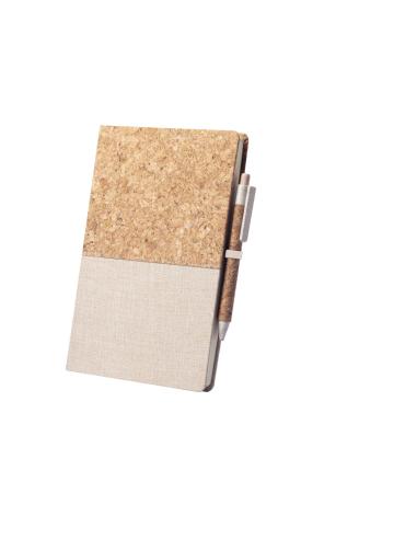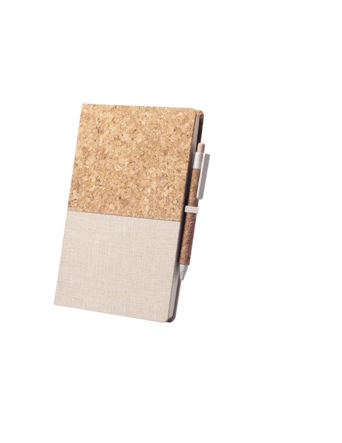 Set de bloc de notas y bolígrafo en línea nature. Incluye bloc de notas con tapas rígidas en corcho natural y algodón, con soporte para bolígrafo y 80 hojas lisas. Bolígrafo de mecanismo pulsador, con cuerpo en corcho natural y accesorios en caña de trigo, para así fomentar la utilización de materias primas naturales y reducir las emisiones contaminantes. Tinta negra.