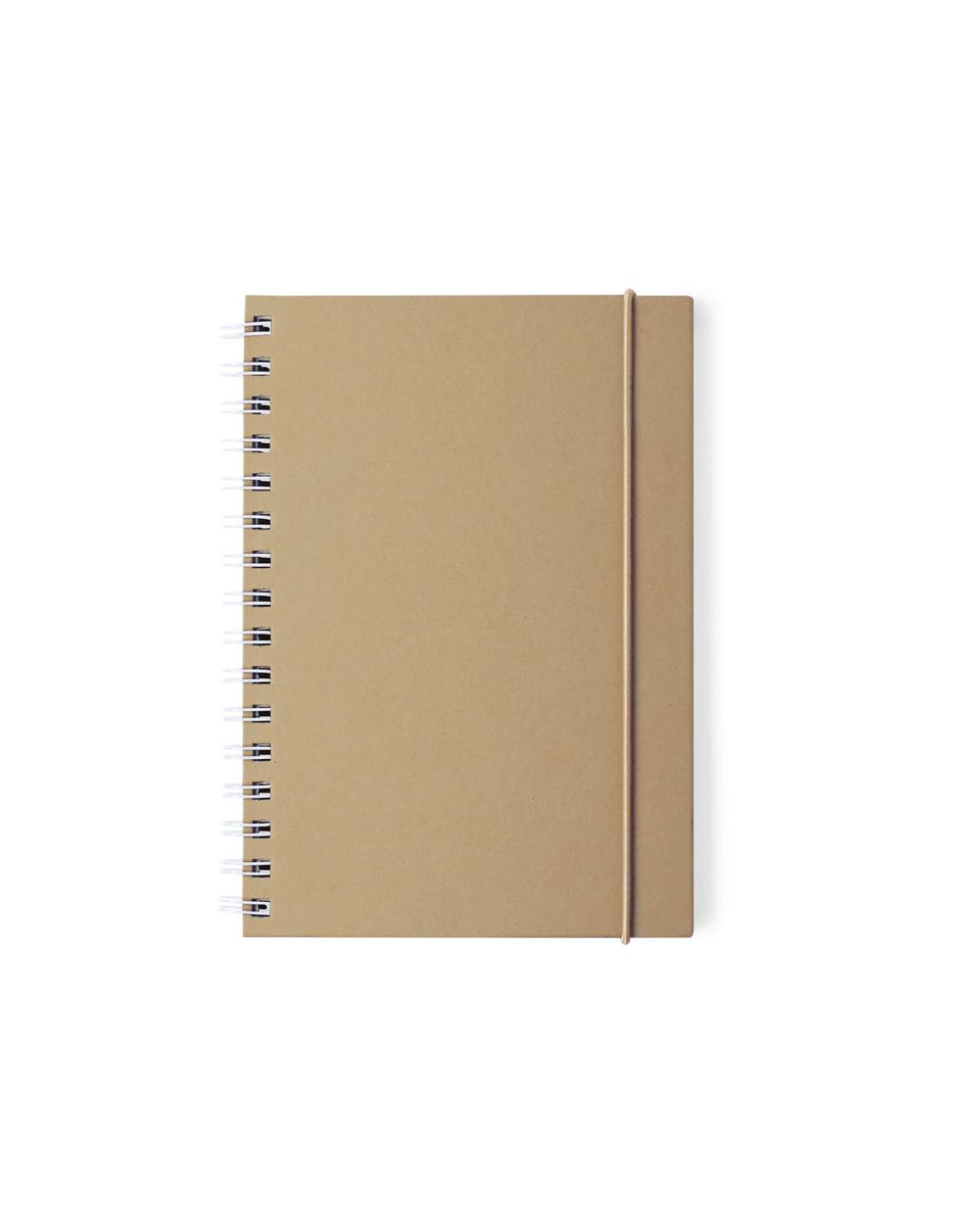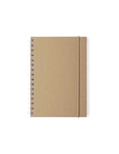 Libreta con anillas de color en línea nature. Con tapas rígidas en cartón reciclado y elástico de cierre en colores naturales. Con 80 hojas de disposición a una raya y diseño eco.
